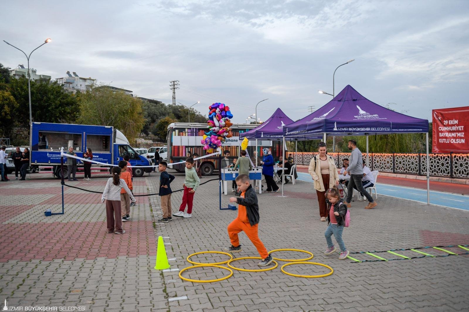 Bando sonrasında halk oyunu gösterisiyle devam eden programda vatandaşlar “Atatürk’ün Yurt Gezileri” adıyla etkinlik alanında kurulan fotoğraf sergisini dolaştı. İzmir Büyükşehir Belediyesi Pop Orkestrası, Kültür Orkestrası ve Türk Halk Müziği Muhtarlar Korosu’nun konserleriyle müzik ziyafeti sunuldu. İzmir Büyükşehir Belediyesi Köy Tiyatroları Cumhuriyet Oyunu sahnelenirken mini disko, sihirbaz, palyaço ve yüz boyama etkinlikleriyle minikler de eğlenceye doydu. Alanda ayrıca gençlik spor deneyim alanları, VR deneyim alanı, çocuk atölyeleri, sağlık işleri ve tarımsal hizmetlerle ilgili stantlar, gezici kütüphane aracı ile akıl zeka oyunları atölyesi yer aldı.