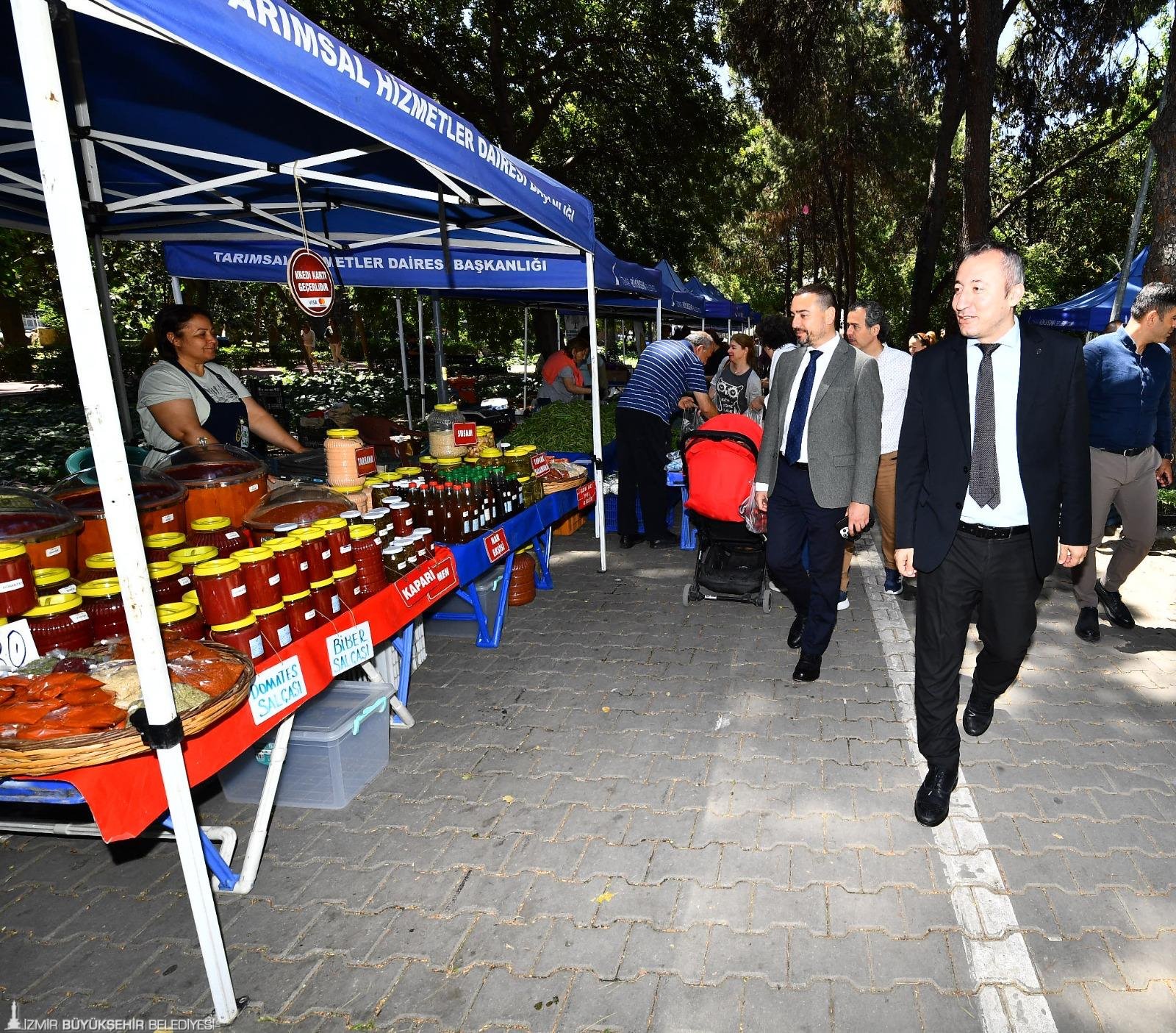 İzmir’de 14 Mayıs Dünya Çiftçiler Günü, hafta boyunca İzmir Büyükşehir Belediyesi’nin düzenlediği etkinliklerle kutlandı. İzmir Büyükşehir Belediyesi’nin her çarşamba Kültürpark’ta kurduğu üretici pazarında düzenlenen kutlama programında ise çiftçiler keyifli bir gün geçirdi. İzmir Büyükşehir Belediyesi Bandosu’nun marşlarıyla renklenen üretici pazarında, organik tarım ve sürdürülebilir tarım uygulamaları ile ilgili söyleşi düzenlendi. Büyükşehir Belediyesi Genel Sekreter Yardımcısı İsmail Mutaf ve Tarımsal Hizmetler Dairesi Başkanı Bülent Üngür üreticilerin çiftçiler gününü kutladı.