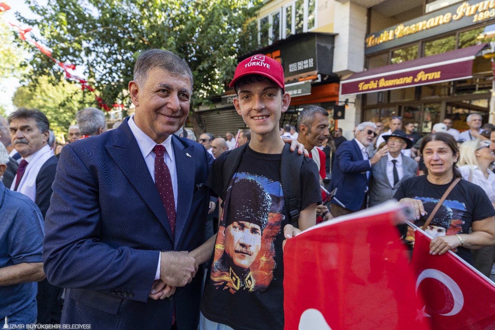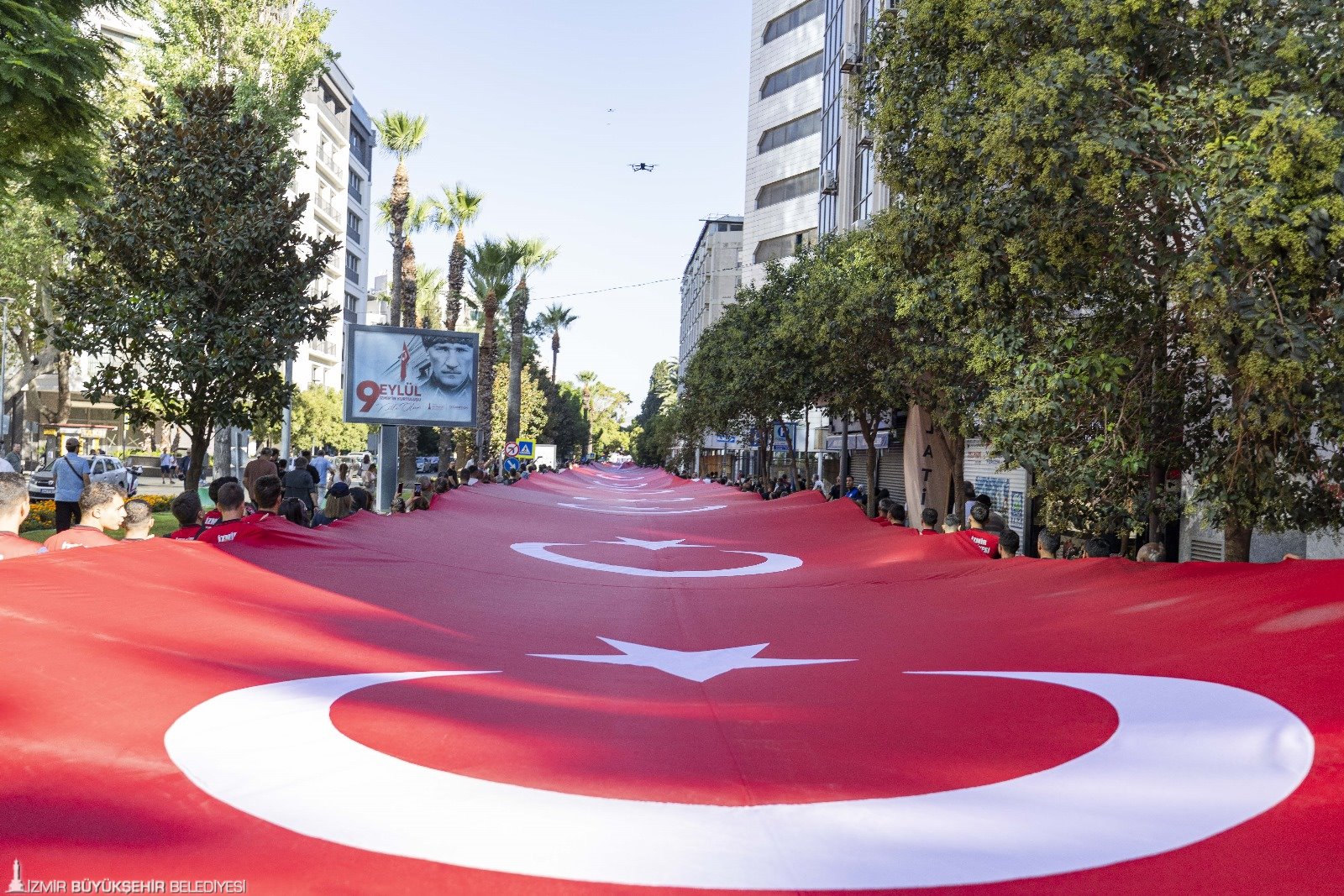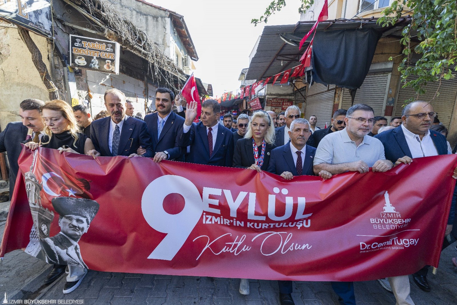 İzmir’de kurtuluşun 103’üncü yıl dönümü kutlamaları kapsamında Türk ordusunun 9 Eylül 1922'de kente girerken kullandığı güzergâh üzerinde 9 Eylül Zafer Yürüyüşü düzenlendi. İzmir Büyükşehir Belediye Başkanı Dr. Cemil Tugay’ın katıldığı yürüyüş, Basmane Karakolu önünden Cumhuriyet Meydanı’na kadar devam etti. Kortejde milletvekilleri, siyasi parti temsilcileri, ilçe belediye başkanları, meclis üyeleri, bürokratlar, iş dünyası, sivil toplum örgütlerinin temsilcileri ve binlerce İzmirli yer aldı. Yürüyüşte 350 metre uzunluğundaki dev Türk Bayrağı taşındı. İzmirliler marşlar eşliğinde yürüyenlere alkışladı. Zafer Yürüyüşü Cumhuriyet Meydanı’nda noktalandı. Program kapsamında İzmir Valisi Dr. Süleyman Elban, Ege Ordusu ve Garnizon Komutanı Orgeneral İrfan Özsert ve İzmir Büyükşehir Belediye Başkanı Dr. Cemil Tugay Cumhuriyet Meydanı’nda bulunan Atatürk Anıtı’na çelenk sundu. Tören, saygı duruşunda bulunulması ve İstiklal Marşı’nın okunmasının ardından son buldu.