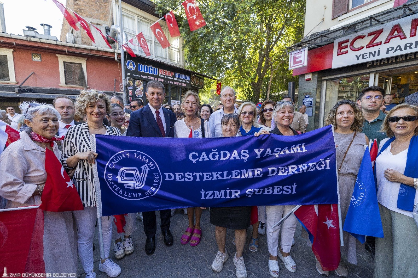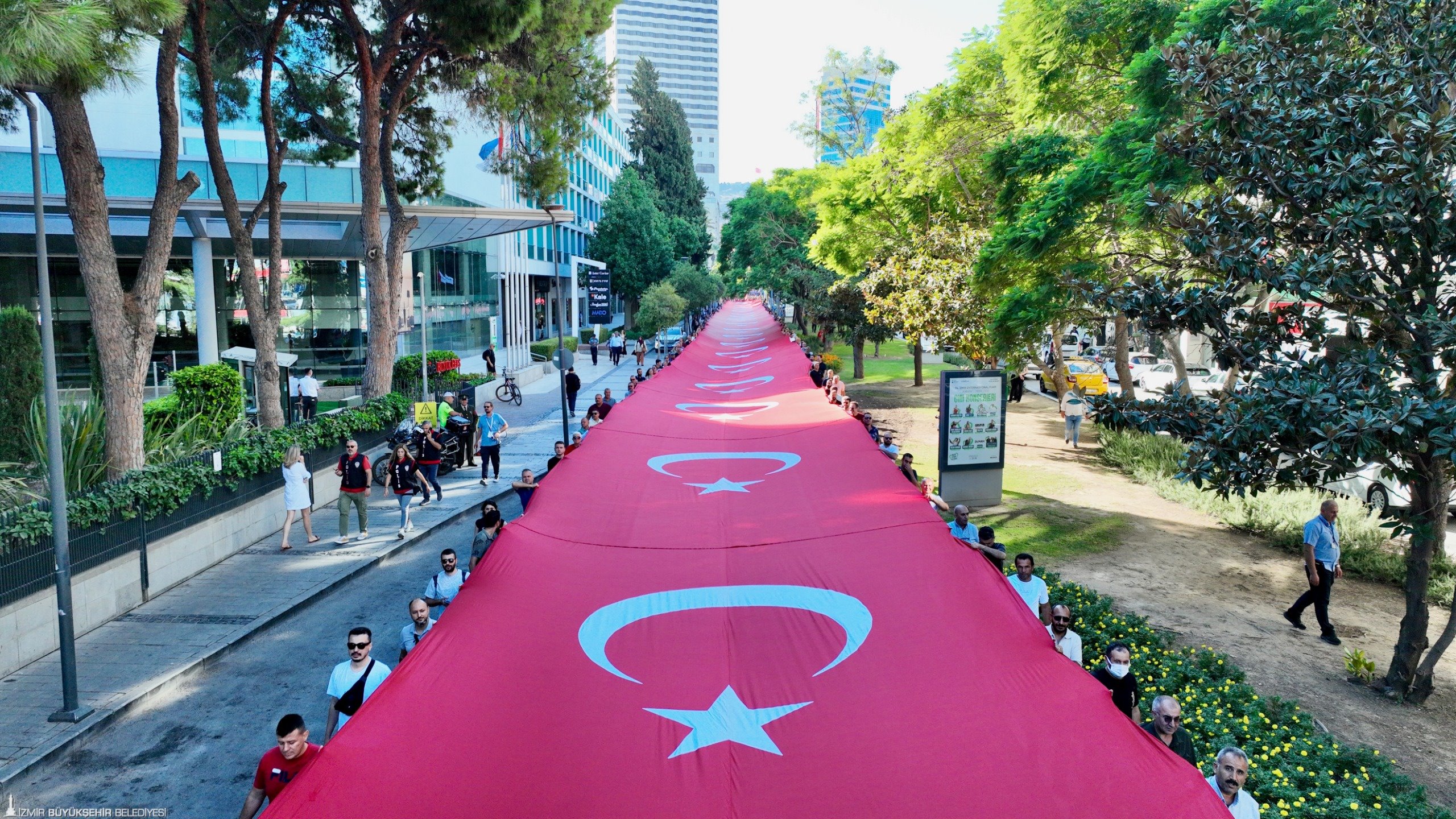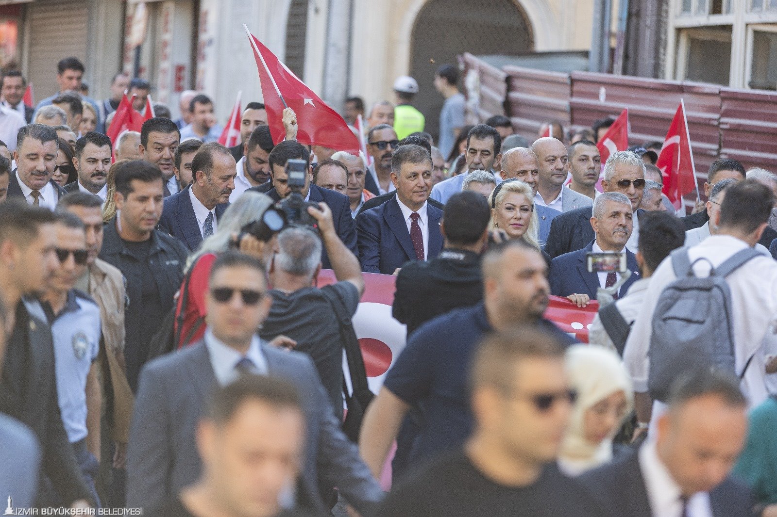İzmir’de kurtuluşun 103’üncü yıl dönümü kutlamaları kapsamında Türk ordusunun 9 Eylül 1922'de kente girerken kullandığı güzergâh üzerinde 9 Eylül Zafer Yürüyüşü düzenlendi. İzmir Büyükşehir Belediye Başkanı Dr. Cemil Tugay’ın katıldığı yürüyüş, Basmane Karakolu önünden Cumhuriyet Meydanı’na kadar devam etti. Kortejde milletvekilleri, siyasi parti temsilcileri, ilçe belediye başkanları, meclis üyeleri, bürokratlar, iş dünyası, sivil toplum örgütlerinin temsilcileri ve binlerce İzmirli yer aldı. Yürüyüşte 350 metre uzunluğundaki dev Türk Bayrağı taşındı. İzmirliler marşlar eşliğinde yürüyenlere alkışladı. Zafer Yürüyüşü Cumhuriyet Meydanı’nda noktalandı. Program kapsamında İzmir Valisi Dr. Süleyman Elban, Ege Ordusu ve Garnizon Komutanı Orgeneral İrfan Özsert ve İzmir Büyükşehir Belediye Başkanı Dr. Cemil Tugay Cumhuriyet Meydanı’nda bulunan Atatürk Anıtı’na çelenk sundu. Tören, saygı duruşunda bulunulması ve İstiklal Marşı’nın okunmasının ardından son buldu.