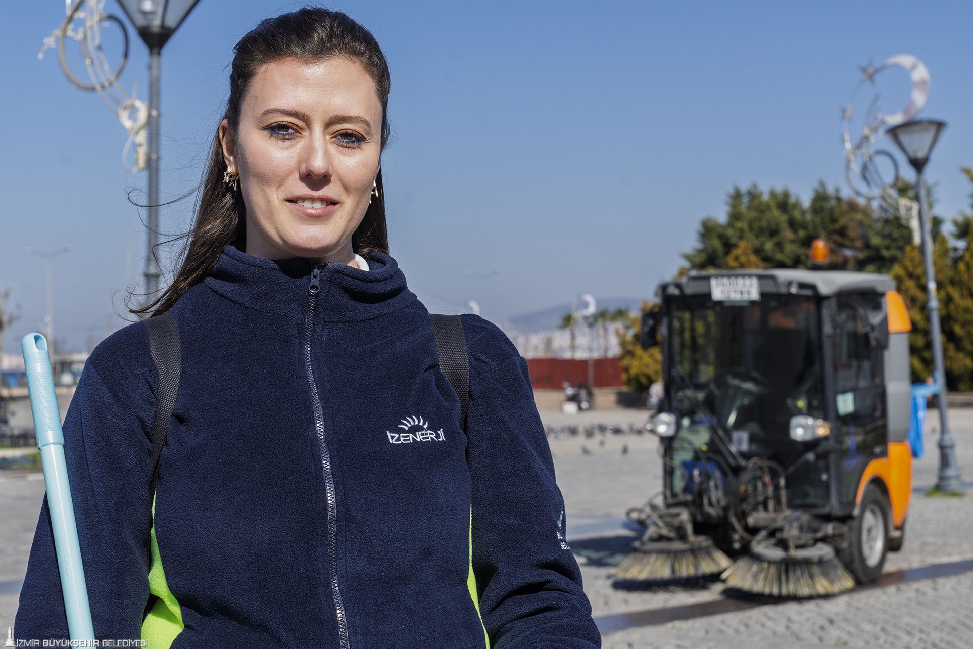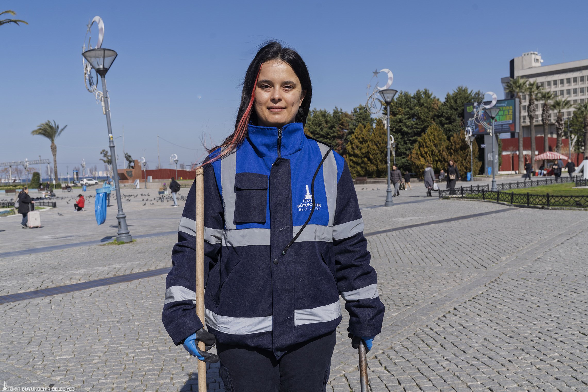Süpürgeci Özgül Balaban da doğup büyüdüğü şehre hizmet etmenin gururunu taşıdığını aktardı. Kadınların yaşam alanlarında çok titiz olduğunu ifade eden Balaban, “Kendi hayatımızda nasıl titizsek, bunu sokaklara da yansıtıyoruz. Burada da aynı düzeni sağlıyoruz” diye konuştu. Daha önce kasiyer olarak çalışan Nazlıcan Güleryüz ise işini severek yaptığını söyledi. İzmirlilerin de kente sahip çıkmasını isteyen Güleryüz, “Daha sağlıklı bir İzmir için yurttaşların çöplerini yerlere değil de çöp kovalarına atmalarını rica ediyoruz” dedi.