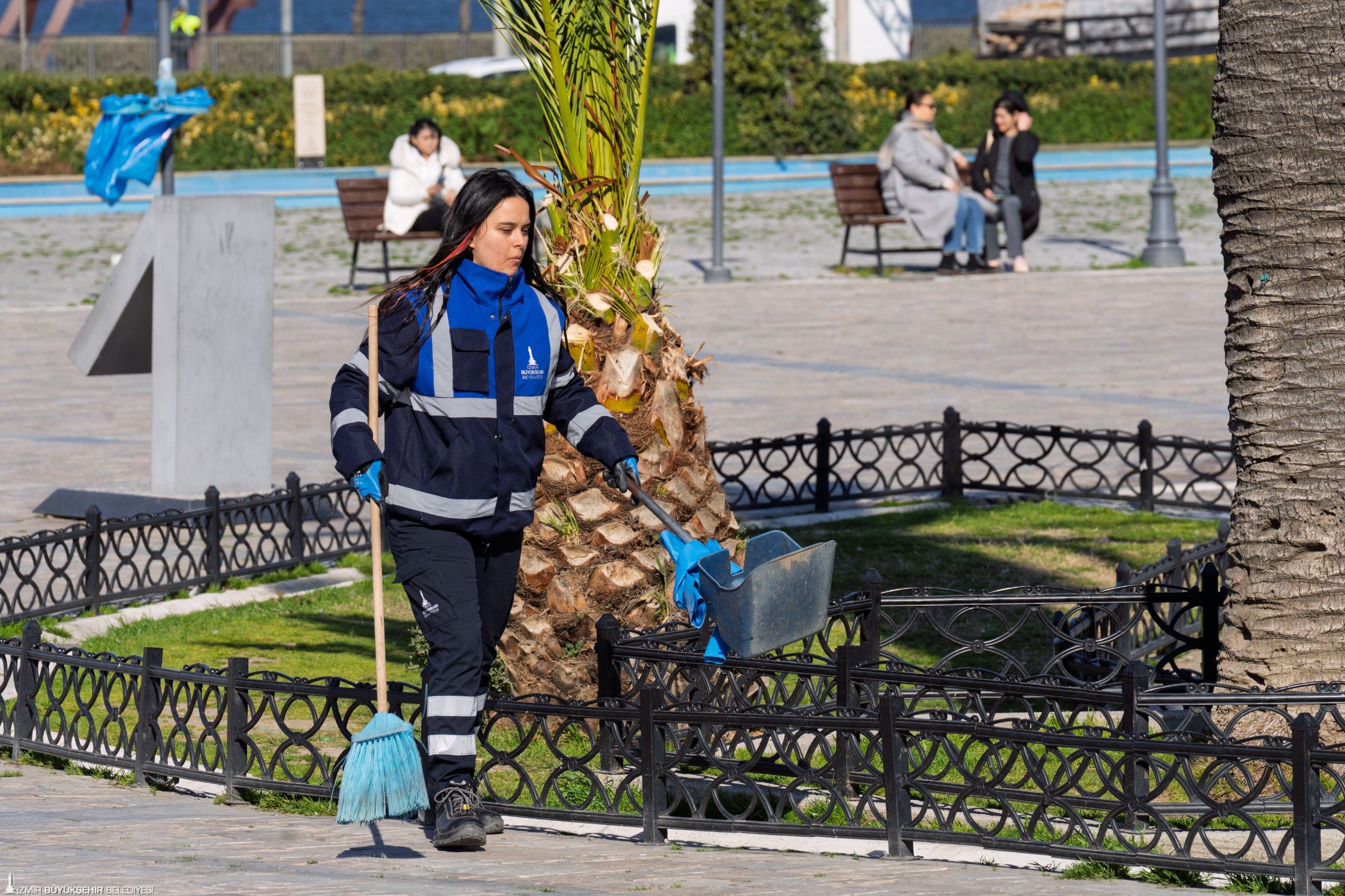 Tüm çalışanların işini severek yaptığını söyleyen İklim Değişikliği ve Sıfır Atık Dairesi Başkanlığı Kent Temizliği Şube Müdürlüğü Konak 1 Bölge Amiri Özlem Pelivan da “Bir kadının özeni, sokakları temizlerken de hissediliyor. Evimizi temizler gibi sokakları temizliyoruz. Bütün özverimizle çalışıyoruz ancak sizlerde lütfen yerlere çöp atmayın” dedi.