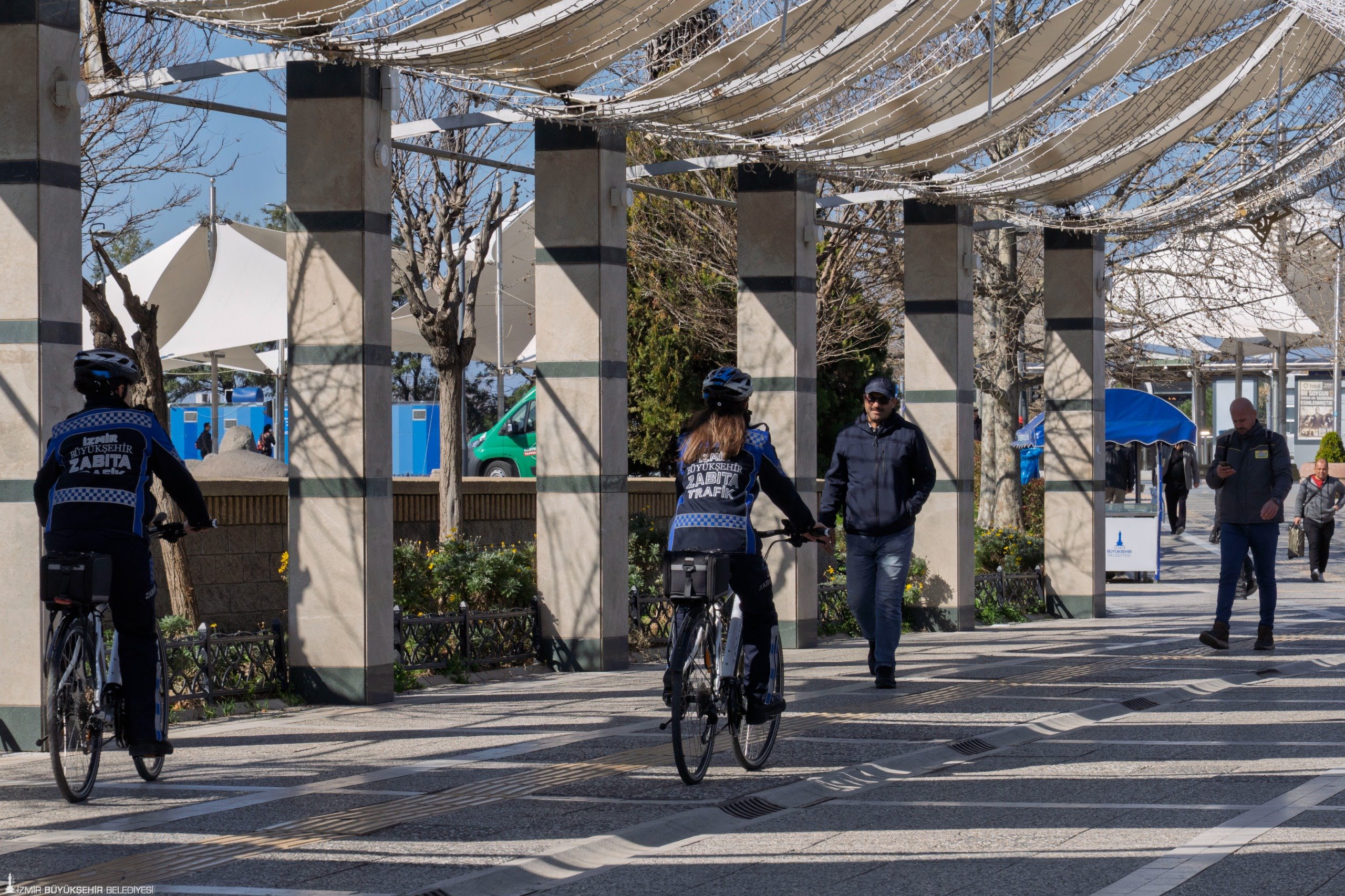 İzmir Büyükşehir Belediyesi’nin kadın zabıta personeli ise güvenli ve düzenli bir kent için emek harcıyor. İzmir Büyükşehir Belediyesi Zabıta Dairesi Başkanlığı Bisikletli Ekipler Amirliği’nde görevli zabıta memuru Sinem Özan da belediyenin topluma dönük binlerce yüzünden sadece biri. Kentte sahil şeridi, yaya yolları, kaldırım işgallerini bütün gün bisiklet sürerek kontrol altında tutmaya çalışan Özan, “Vatandaşlarımızın sağlıklı, huzurlu şekilde, herhangi bir engelle karşılaşmadan günlük yaşamlarını sürdürmesi için görev yapıyoruz. Yurttaşlar kadın memurları görünce güzel tepki veriyor. Sahada kadın ve erkek gözetmeksizin hepimiz aynı zorluklarla karşılaşıyoruz. Kadınlar toplumun temel yapı taşını oluşturan, gelecek nesilleri yetiştirenlerdir. O nedenle yılın her günü kıymeti ve değeri bilinmeli” dedi.