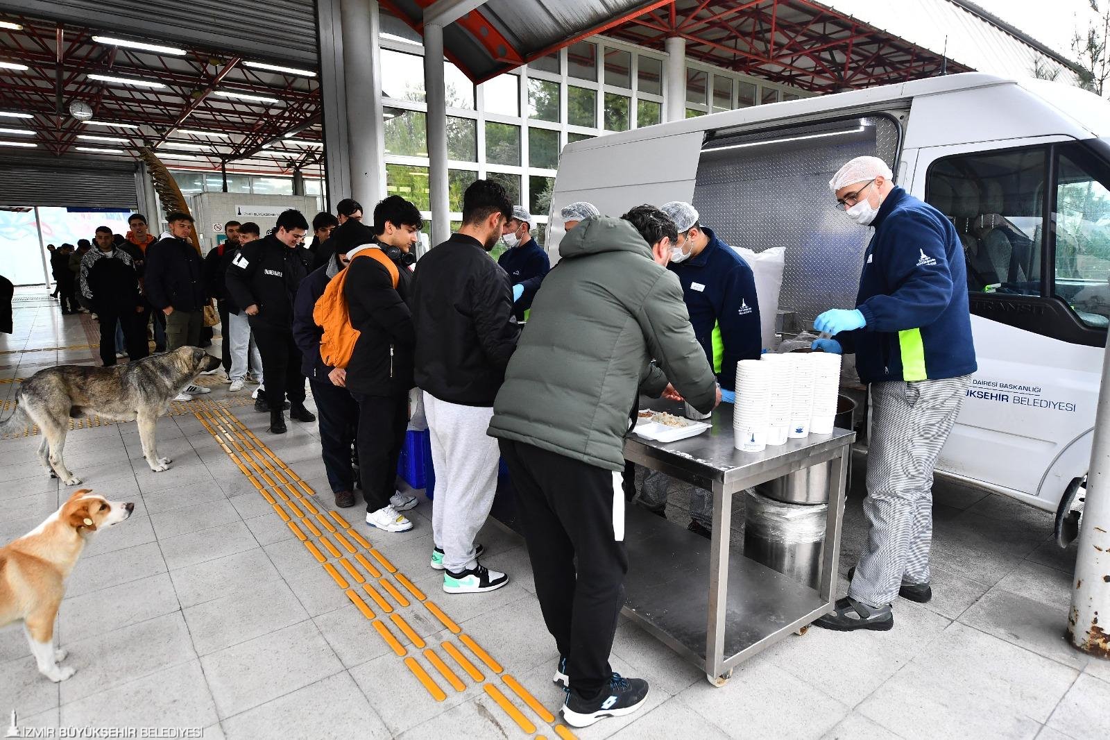 İzmir Büyükşehir Belediyesi’nin üniversite öğrencilerine sunduğu ücretsiz sıcak yemek uygulaması devam ediyor. Büyükşehir Belediyesi bünyesindeki aşevinde üretilen sağlıklı ve lezzetli yemekler, Ege Üniversitesi içi metro durağı, Katip Çelebi Üniversite içi kız yurdu yakını, Bakırçay Üniversitesi içi, Demokrasi Üniversitesi önü, İzmir Yüksek Teknoloji Enstitüsü (İ.Y.T.E.) içi kütüphane önü, Dokuz Eylül Üniversitesi Tarık Akan Gençlik Merkezi önünde bulunan 6 noktadan üniversite öğrencilerine ulaştırılıyor.