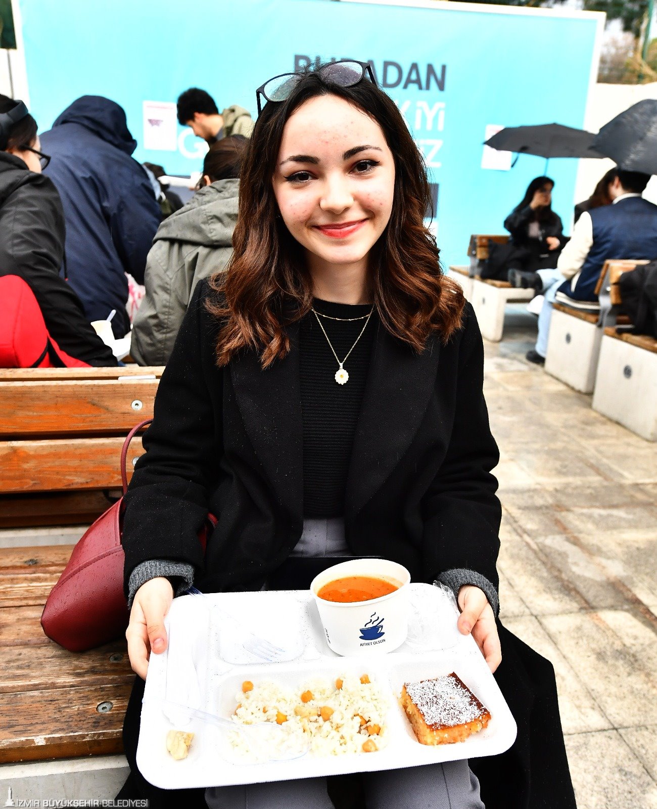 İzmir Büyükşehir Belediyesi bünyesindeki Aşevleri Şube Müdürlüğü’nde gıda mühendisi olarak görev yapan Melisa Mete, “Kentimizde bulunan 6 devlet üniversitesinde hafta içi günlük ortalama 3 bin kişilik sıcak yemek dağıtıyoruz. Günümüz olumsuz ekonomik şartlarında üniversite öğrencilerinin bir öğününü karşılayarak bütçelerine destek sağlamayı amaçlıyoruz. Şehir dışından evlatlarını eğitim alması için gönderen ailelerin de olumlu dönüşleri bizi çok mutlu ediyor” dedi.