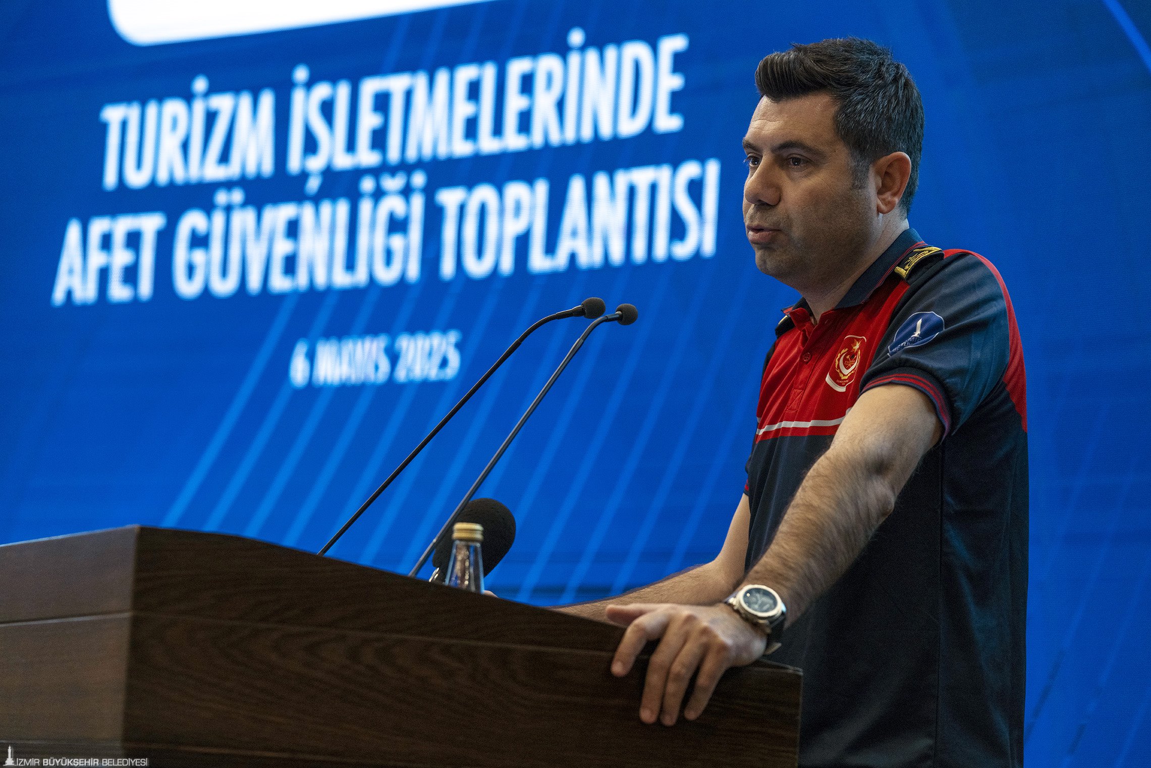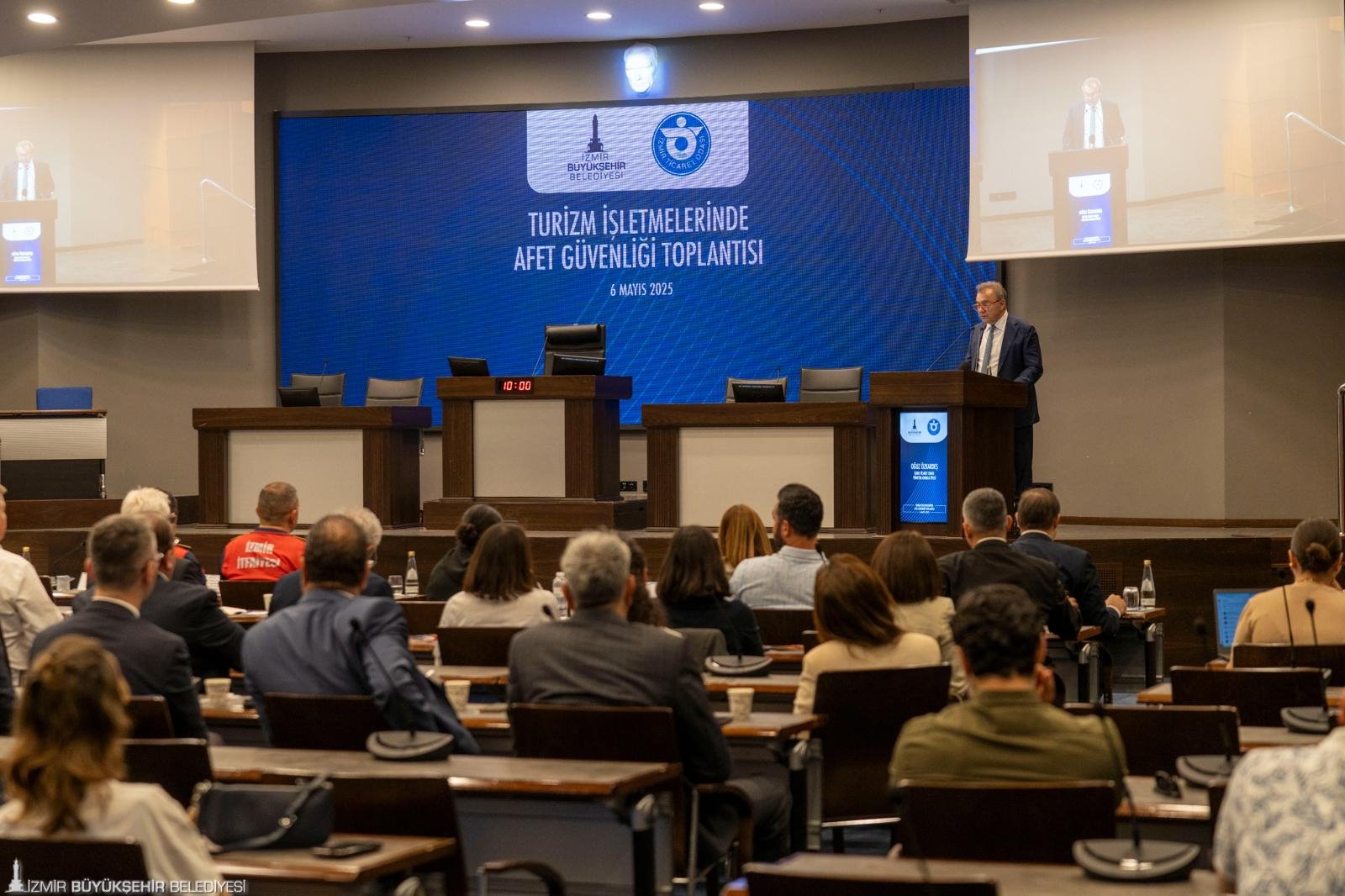 İzmir Büyükşehir Belediyesi, afet güvenliğini sağlamak ve acil eylem planı oluşturmak için çalışmalarını sürdürüyor. Kentteki turizm işletmelerine yönelik denetim ve eğitim faaliyetlerine büyük önem veren Büyükşehir Belediyesi, İtfaiye Dairesi Başkanlığı, Afet İşleri Dairesi Başkanlığı ve İZTO iş birliğiyle “Turizm İşletmelerinde Afet Güvenliği” konulu bilgilendirme toplantısı düzenlendi. İzmir Ticaret Odası (İZTO) Meclis Toplantı Salonu’nda düzenlenen programa İzmir Büyükşehir Belediyesi yetkilileri ve sektör temsilcileri katıldı.