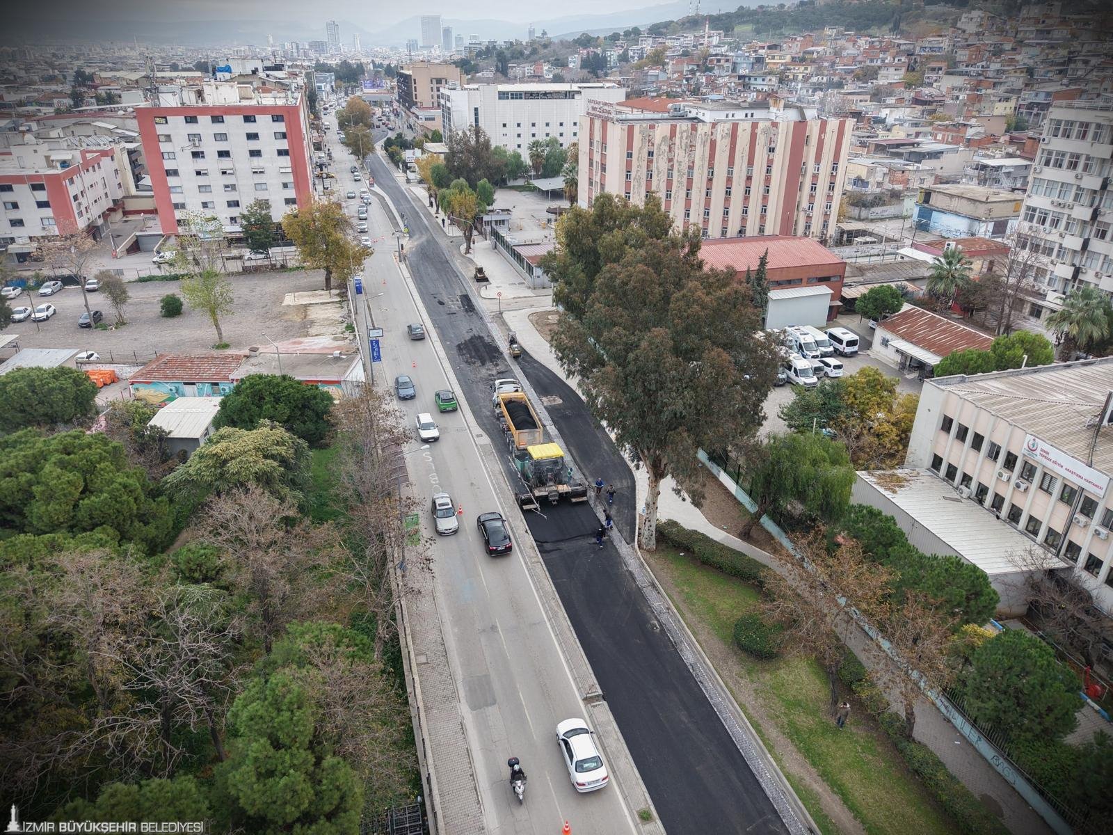 İzmir Büyükşehir Belediyesi, 30 ilçede başlatılant asfalt seferberliği ile 2026 yılına hızlı bir başlangıç yaptı. İzmir Büyükşehir Belediyesi Fen İşleri Dairesi Başkanlığı koordinesinde çalışmalarını sürdüren İZBETON ekipleri, planlama doğrultusunda yol onarım ve yenileme çalışmalarını hem merkez hem de çevre ilçelerde aralıksız sürdürüyor. Kent merkezinde yürütülen çalışmalar kapsamında Bayraklı’nın Fuat Edip Baksi Mahallesi’nde bulunan 1639 Sokak’ta bin 224 ton asfalt serimi gerçekleştirilerek sokak yepyeni bir görünüme kavuşturuldu. Bayraklı’daki çalışmanın ardından, hastaneler güzergâhında yer alan Konak Gaziler Caddesi de asfaltlandı. Yaklaşık 2 kilometrelik hatta 3 bin 783 ton asfalt dökülerek ulaşım daha güvenli ve konforlu hâle getirildi. Fen İşleri Dairesi Başkanlığı’nın planlamaları doğrultusunda, kent merkezindeki yol yenileme çalışmalarının yıl boyunca devam edeceği belirtildi.