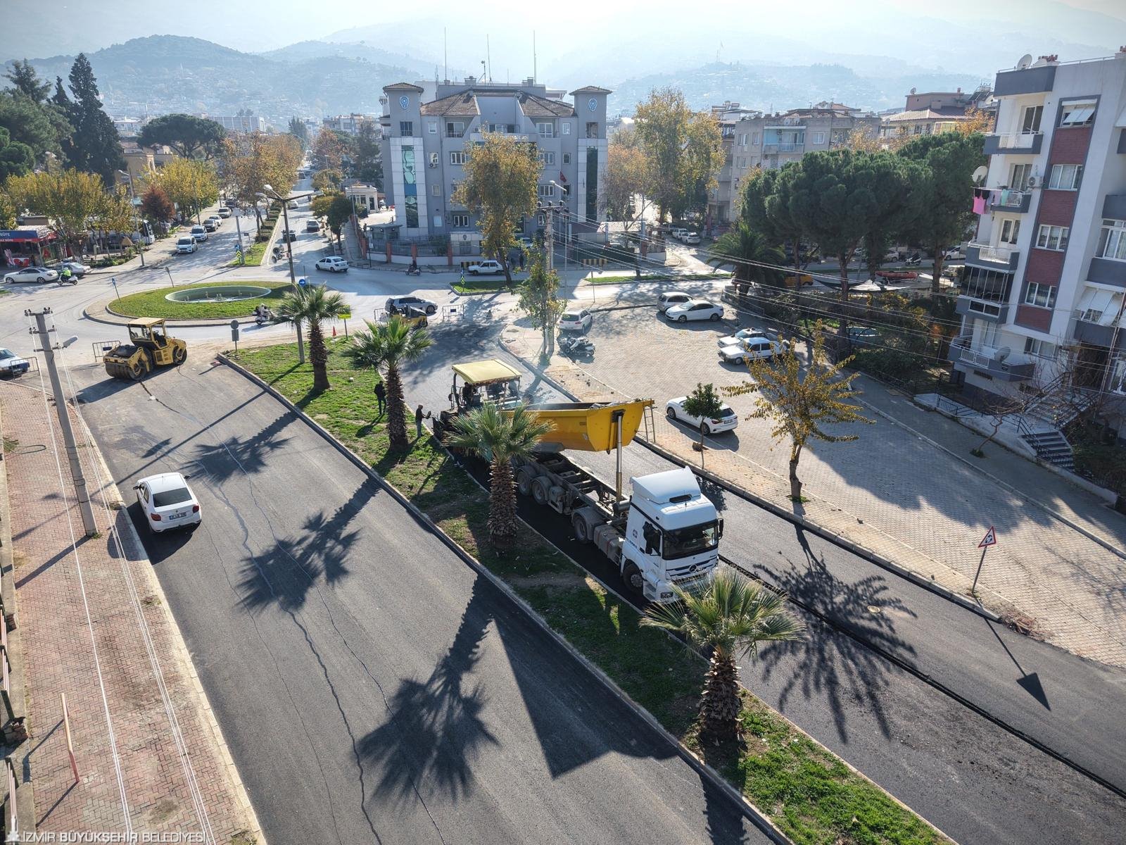 İzmir Büyükşehir Belediyesi, merkez ilçelerdeki yol yenileme çalışmalarını sürdürürken Küçük Menderes Havzası’nda da ilçe yollarını eş zamanlı olarak yeniliyor. Bu kapsamda Tire ilçe merkezinde bulunan Rafet Saygılı Caddesi ile Atatürk Caddesi’nde toplam bin 200 metre uzunluğunda, 3 bin 350 ton sıcak asfalt serimi gerçekleştirildi. Ödemiş’te ise ilçe içi ulaşımda alternatif güzergâh olarak kullanılan Emmioğlu Caddesi, Tavaslı Caddesi ve Millet Caddesi tamamen yenilendi. Söz konusu çalışmalarda toplam bin 200 metre uzunluğunda 3 bin 200 ton sıcak asfalt serimi tamamlandı.