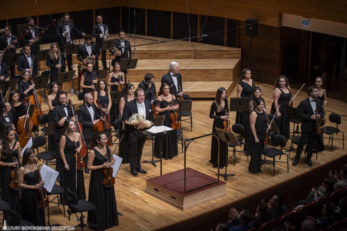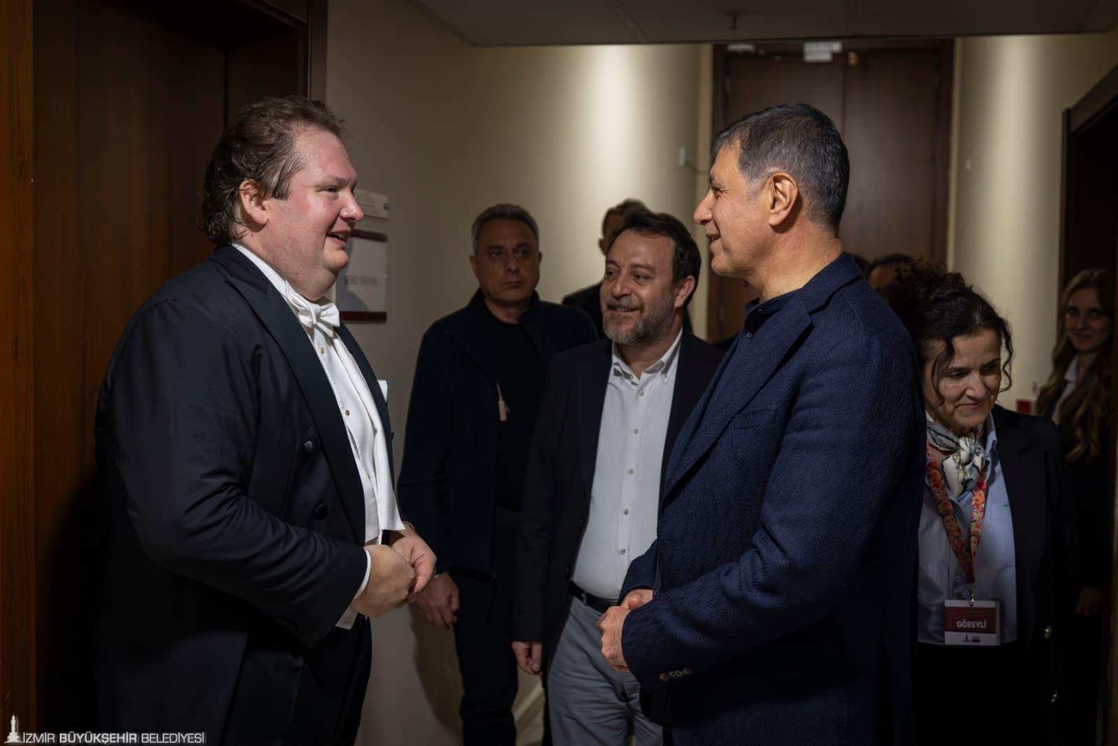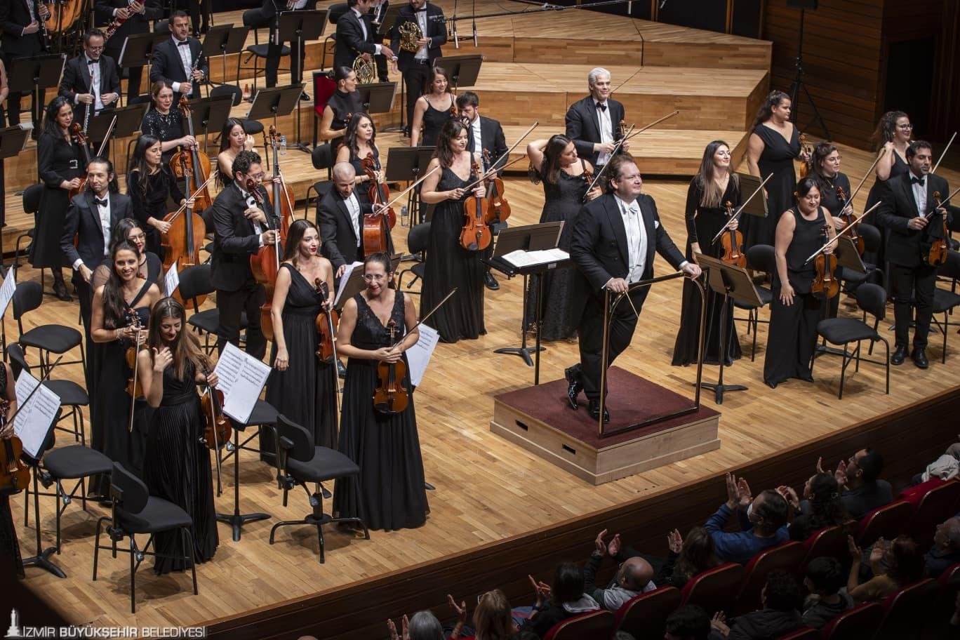İzmir Büyükşehir Belediye Başkanı Dr. Cemil Tugay, Ahmed Adnan Saygun Sanat Merkezi’nde (AASSM) gerçekleşen İzmir Oda Orkestrası konserine katıldı. İzmirli sanatseverlere müzik ziyafeti sunan programın ilk yarısında HR Frankfurt Radyo Senfoni Orkestrası’nın Başkemancısı Bükreşli sanatçı Florin Iliescu, repertuvarının en virtüözistik eserlerinden H. Wieniawski Polonaise de Concert, op.4 (Konser Polonezi) ve E. Ysaye Caprice d’après L’Étude en Forme de Valse (Vals Biçimindeki Etüt Üzerine Kapris) yapıtlarını seslendirdi. Konserin ikinci yarısında ise Alman şef Jesko Sirvend yönetiminde F. Mendelssohn’un Akdeniz’in renkli ve coşkulu atmosferini yansıtan 4. Senfonisi yorumlandı. Bir buçuk saat süren konser programı ilk yarı teknik virtüözitenin ön planda olduğu solo performanslardan oluştu. İkinci yarı Mendelssohn’un enerjik ve geniş kitlelerce bilinen “İtalyan” senfonisiyle tamamlandı.