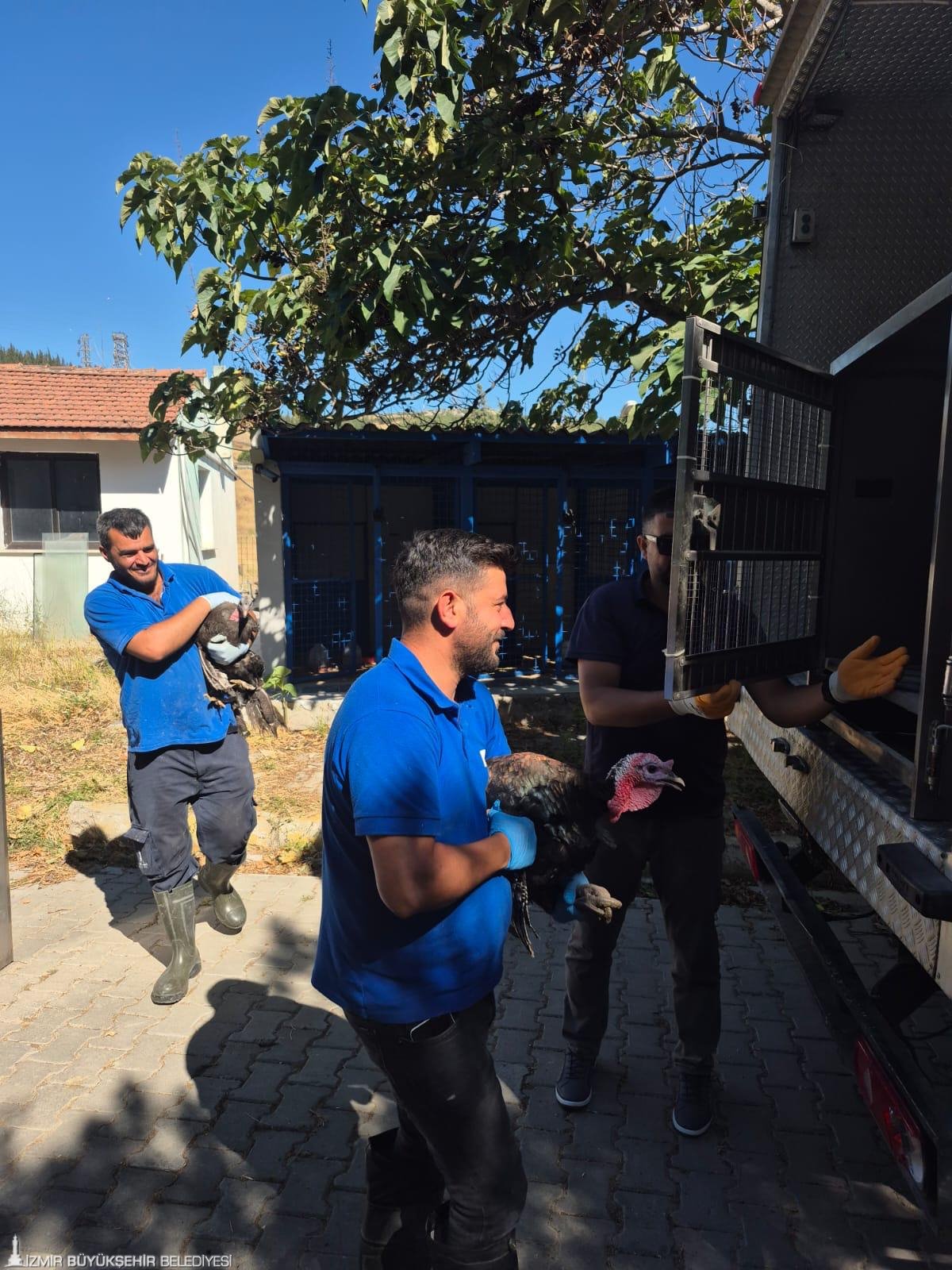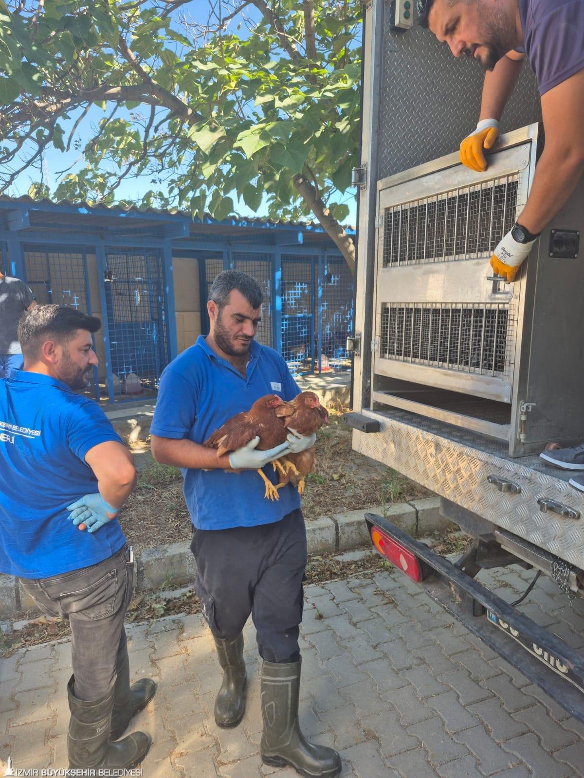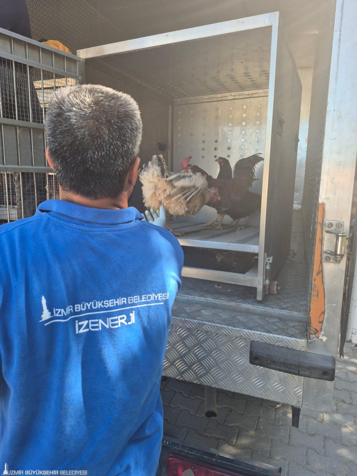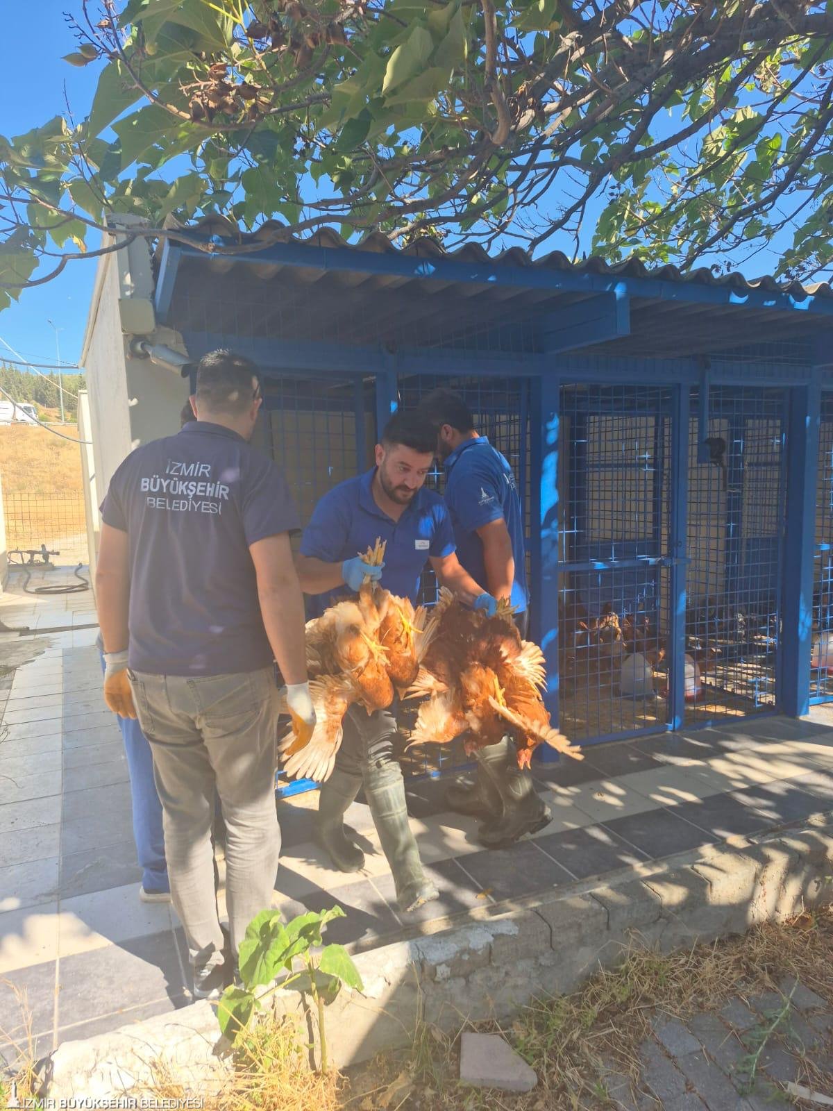 İzmir Büyükşehir Belediyesi Veteriner İşleri Dairesi Başkanlığı Hayvan Sağlığı Şube Müdürlüğü ekipleri, günlerdir kenti etkileyen yangınlarda yurttaşların yardımına koşuyor. Boşaltılan yerleşim yerlerinde bulunan hayvanların tahliyesini sağlayan ekipler, sahipsiz kalan canlıları da alevlerin arasından kurtarıyor. Yoğun şekilde İzmir’in dört bir yanında görev yapan ekipler, sayısız canlıyı kurtararak herkese umut oldu. İyi haber ise Seferihisar’dan geldi. Orman yangınlarının etkilediği yerleşim yerlerinden biri olan Orhanlı Mahallesi’nin tahliye edildiği sırada Tire’de bulunan Seher Beydağ’a İzmir Büyükşehir Belediyesi yardım etti. Ekipler tarafından 100 tavuk, 2 bıldırcın, kedi ve köpek hemen tahliye edildi. 29 Haziran’da alınan hayvanlar, bugün teslim edildi.