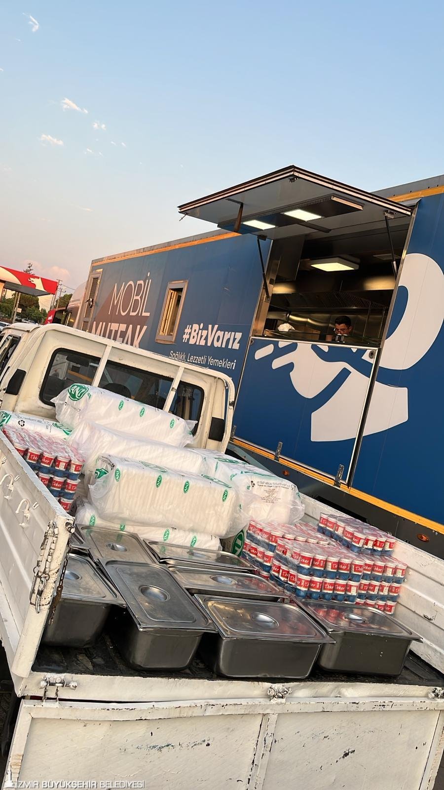 İzmir Büyükşehir Belediyesi Sosyal Hizmetler Dairesi Başkanlığı Aşevleri Şube Müdürlüğü’nde aşçı olarak görev yapan Mehmet Orhan, “Bir nebze de olsa vatandaşlarımızın yaralarını sarmaya geldik. Sabah öğle akşam olmak üzere günlük 6 bin kişilik yemek üretimini ve dağıtımını yapıyoruz. Depremden zarar gören vatandaşlarımıza geçmiş olsun. Biz varız, her zaman yanınızdayız” dedi.