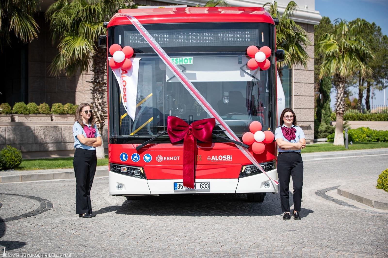 İzmir Büyükşehir Belediyesi, çevreci ve sürdürülebilir ulaşım vizyonu doğrultusunda Türkiye’de bir ilki daha hayata geçirdi. Aliağa Organize Sanayi Bölgesi (ALOSBİ) ile Aliağa ilçe merkezi arasında hizmet verecek Sıfır Emisyonlu Toplu Taşıma Hattı, ALOSBİ’de düzenlenen törenle tanıtıldı. Törene İzmir Büyükşehir Belediye Başkanı Dr. Cemil Tugay, ALOSBİ Yönetim Kurulu Başkanı Haluk Tezcan, İzmir Büyükşehir Belediyesi Genel Sekreter Yardımcısı ve ESHOT Genel Müdürü Övünç Özgen, İzmir Büyükşehir Belediyesi Genel Sekreter Yardımcıları Çağatay Güç, Dr. Hakan Uzun, belediye bürokratları, ALOSBİ yönetim kurulu üyeleri, sanayiciler, çalışanlar ve yurttaşlar katıldı. Deneme sürüşünün yapıldığı törende, 935 numaralı 4 otobüsten oluşan hattın 29 Eylül Pazartesi gününden itibaren hizmet vereceği bildirildi.