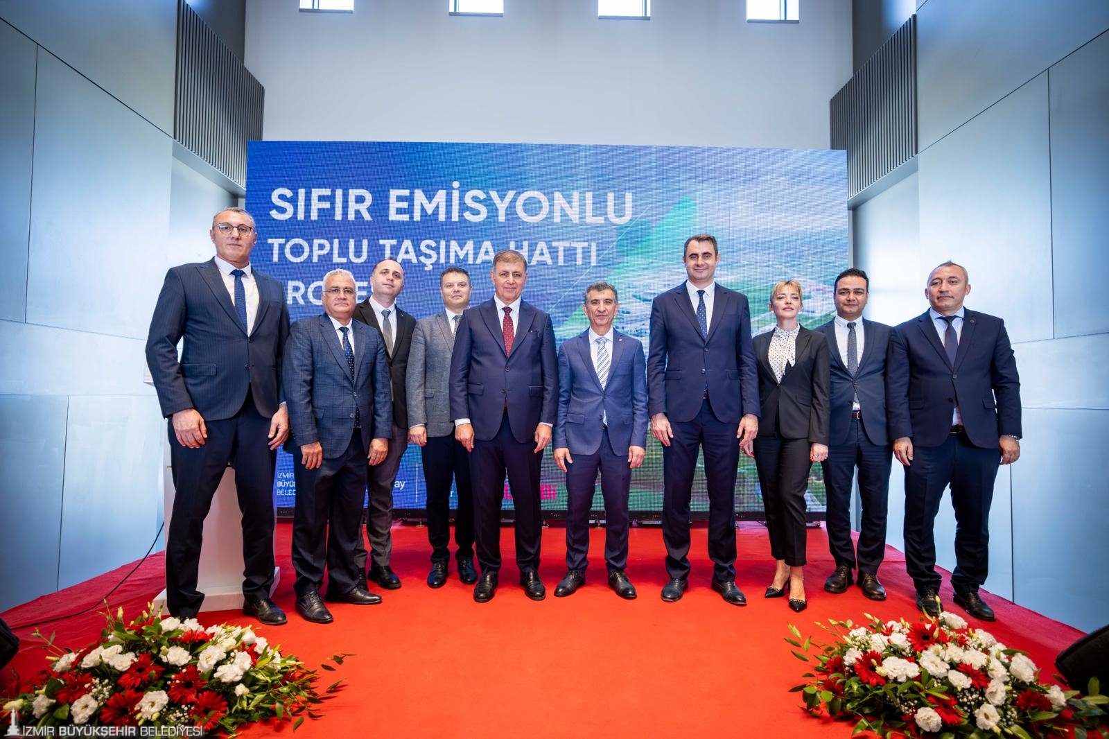Tanıtım töreninde konuşan İzmir Büyükşehir Belediye Başkanı Dr. Cemil Tugay, İzmir’in karbon nötr ulaşım hedefleri doğrultusunda çalıştıklarını belirterek, “Bu proje Türkiye’de bir organize sanayi bölgesinin kent merkeziyle bağlantısını tamamen elektrikli ve sıfır emisyonlu araçlarla sağlayan ilk ve tek projedir. Bu hat, şehir içi emisyonu azaltacak, hava kalitesini yükseltecek ve çocuklarımıza daha sağlıklı bir gelecek bırakmamıza katkı sağlayacaktır. Bu projenin en gurur verici yönlerinden biri de kullandığı enerjinin tamamının rüzgârdan sağlanıyor olmasıdır. Otobüslerimiz tamamen temiz, yüzde yüz yenilenebilir enerjiyle hareket etmektedir. İzmir’in rüzgârını güce dönüştüren bu sistem çevre dostu olmanın ötesinde, kentimizin yenilenebilir enerji vizyonunu güçlü biçimde yansıtmaktadır” dedi.