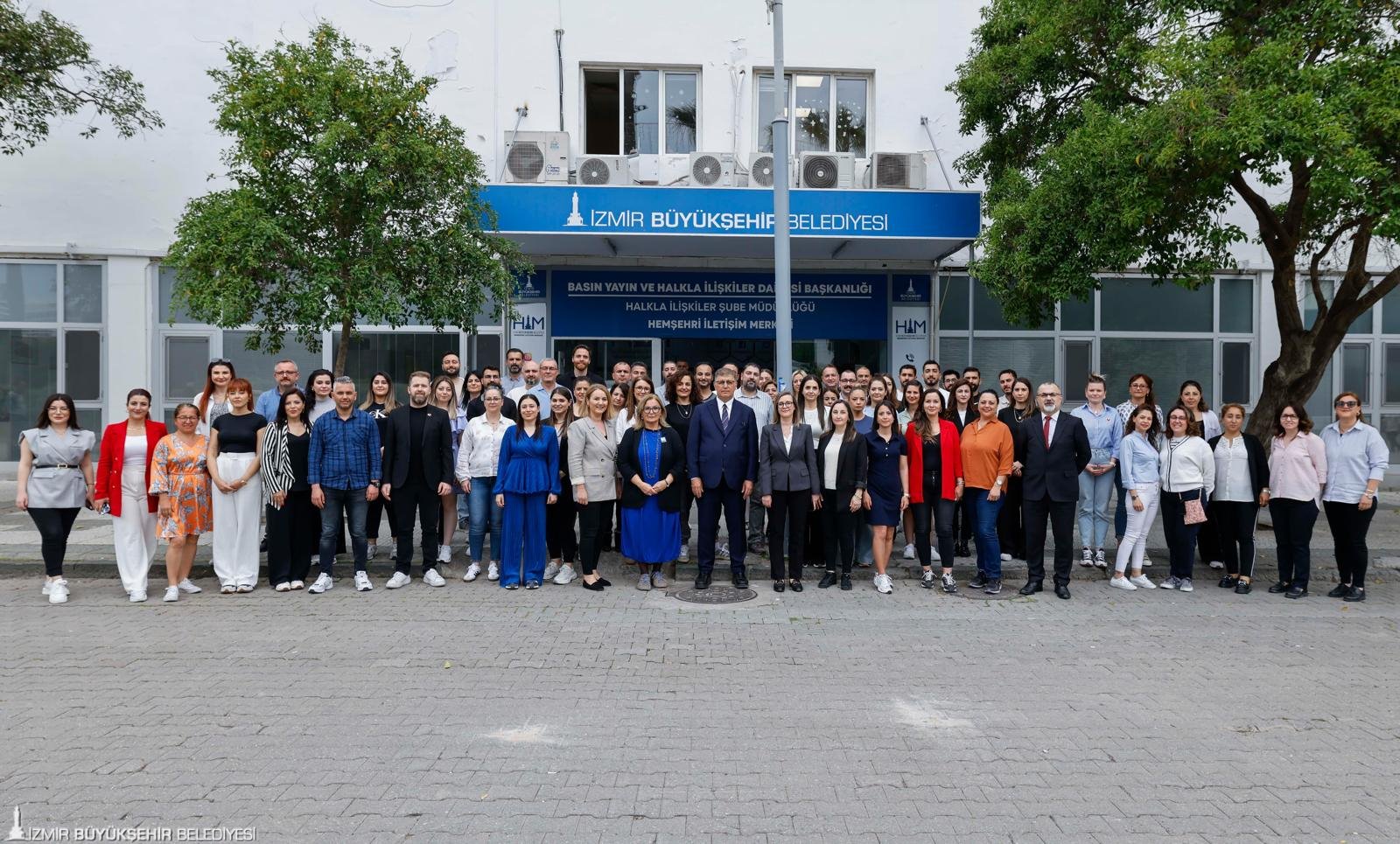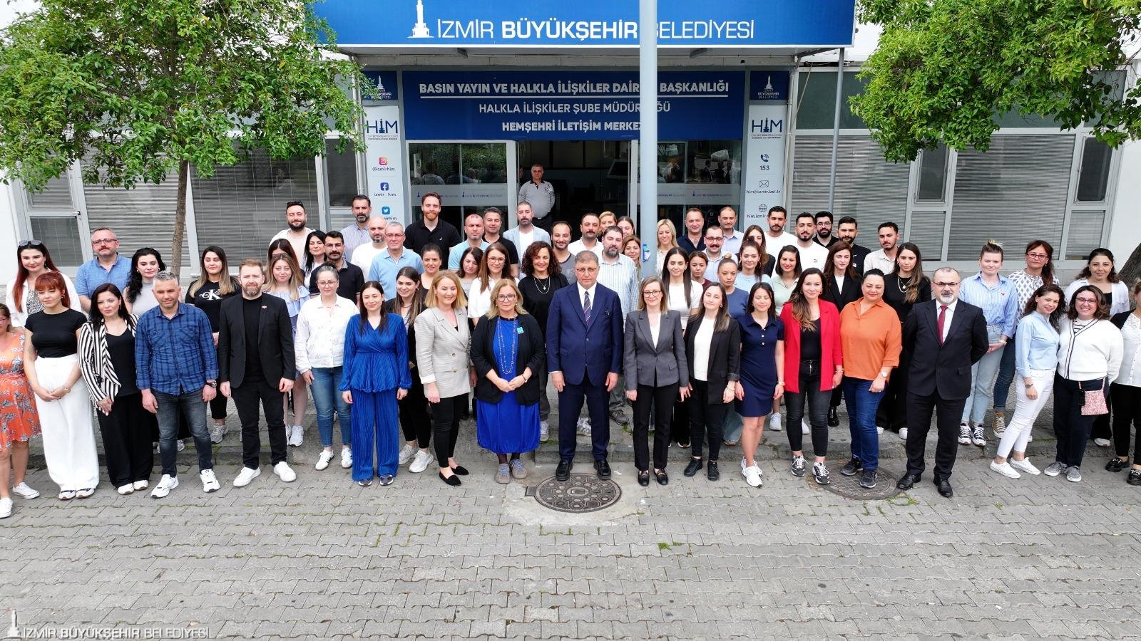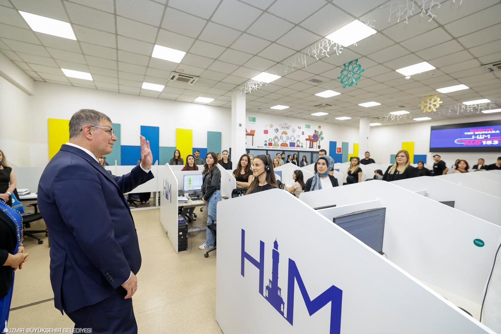 İzmir Büyükşehir Belediyesi ve İzmirli yurttaşlar arasında bir köprü konumunda olan Hemşehri İletişim Merkezi, hızlı ve güvenilir iletişim kurarak vatandaşların sorun, görüş ve taleplerine çözüm sunuyor. İzmir Büyükşehir Belediye Başkanı Dr. Cemil Tugay, İzmirlilerin bir tıkla ya da bir telefonla ulaşabileceği önemli bir ağı yöneten HİM’i ziyaret ederek merkez personeliyle buluştu. İzmir Büyükşehir Belediyesi Genel Sekreter Yardımcısı Prof. Dr. Pınar Okyay’ın da katıldığı ziyarette Basın, Yayın ve Halkla İlişkiler Dairesi Başkanı Eylem Başar Yıldırım’dan merkez hakkında bilgi alan Başkan Tugay, HİM personeline emeklerinden ötürü teşekkür etti.