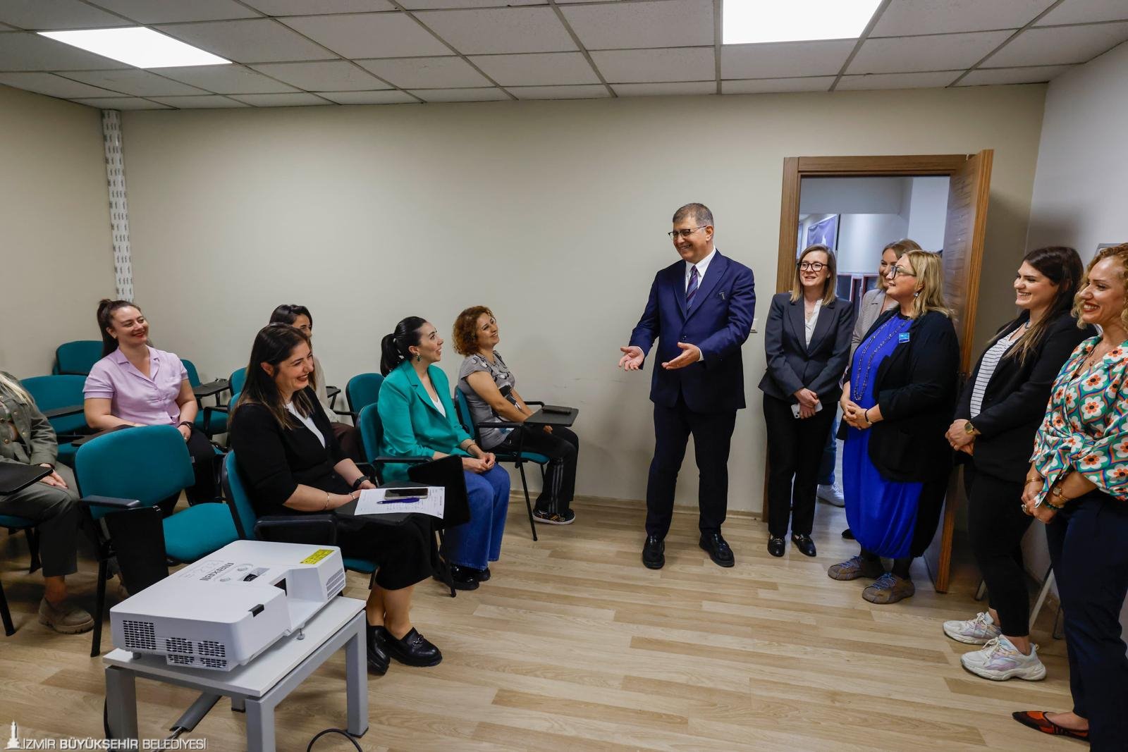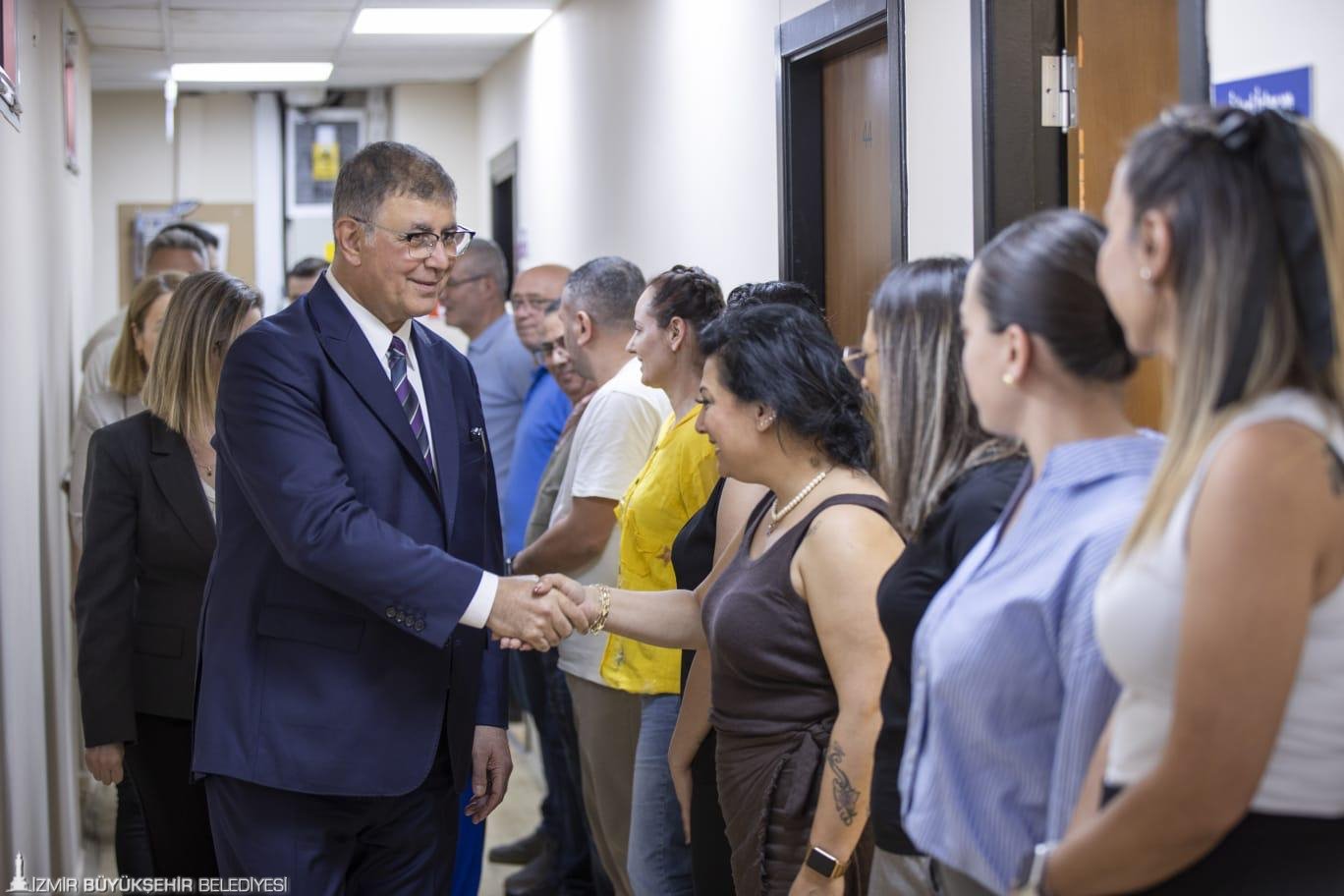 Başkan Tugay, Sosyal Yardımlar Hattı ekibini de ziyaret ederek personelle sohbet etti. Hattın günde yaklaşık bin çağrı aldığı, bayram dönemlerinde çağrı sayısının üç bine ulaştığı belirtildi. Başkan Tugay ayrıca Sağlık İşleri Dairesi Başkanlığı tarafından Eğitim ve Koordinasyon Birimi’nde verilen doğru nefes teknikleri ve omurga sağlığı eğitimlerine katılım sağlayarak eğitim alan personelle sohbet etti. Başkan Tugay, ziyaret sonunda HİM personeli ile fotoğraf çektirdi.