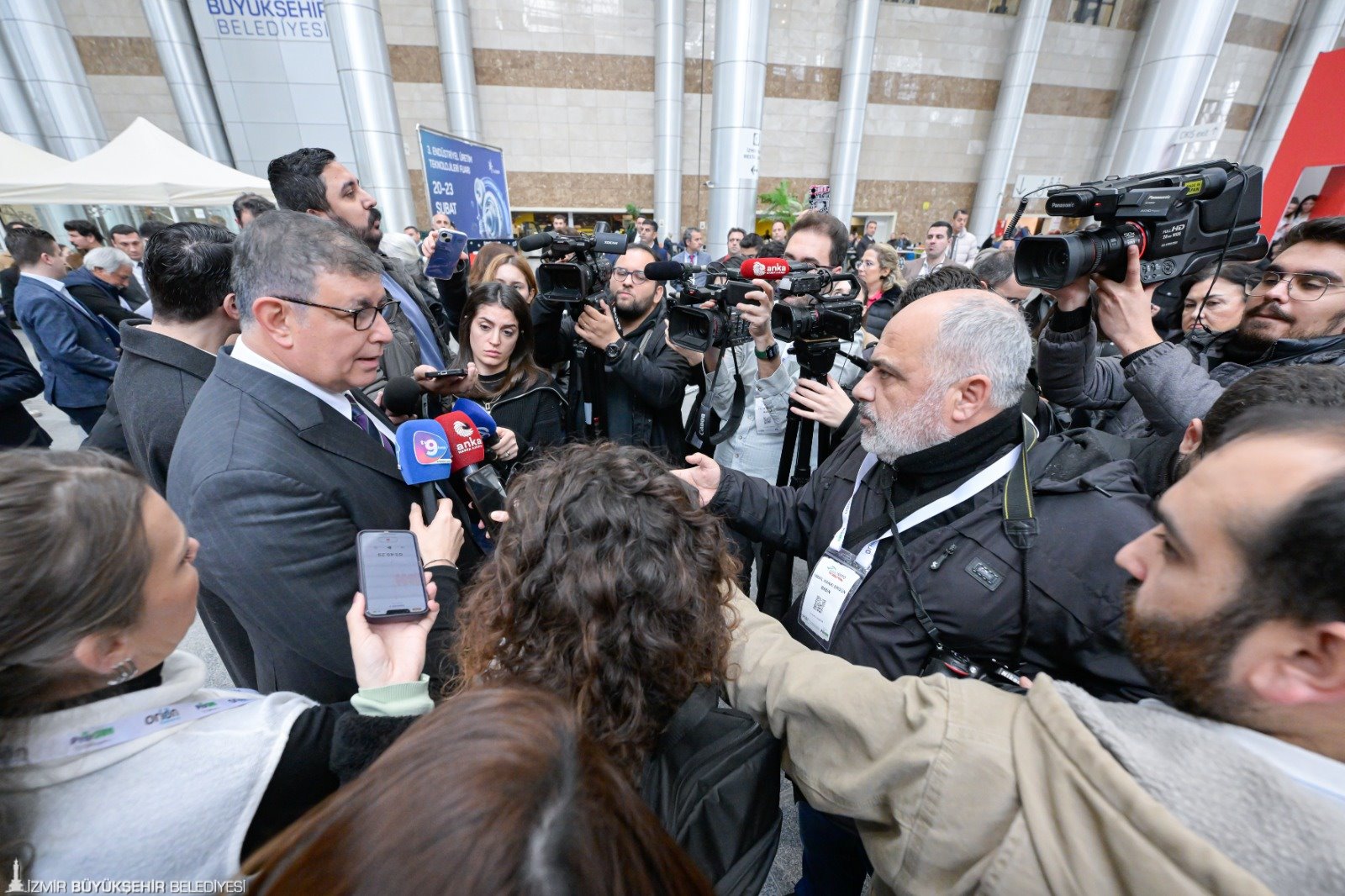 İzmir Büyükşehir Belediye Başkanı Dr. Cemil Tugay, Fuar İzmir’de düzenlenen 20. Agroexpo Uluslararası Tarım ve Hayvancılık Fuarı’nın açılış töreninde basın mensuplarının gündeme dair sorularını yanıtladı. Belediyedeki toplu iş sözleşmesi görüşmeleri ve disiplin sürecindeki bazı personele ilişkin durumu değerlendiren Başkan Tugay, “Temel olarak şunun bilinmesini isterim; bütün çalışanlarımız çok kıymetli ama hepimiz İzmir halkına hizmet etmek için buradayız. İşini yapmamak, görevine gitmemek gibi bir şeyi maalesef kabul edemeyiz. Bu anlamda yürüyen bir süreç var” diye konuştu.