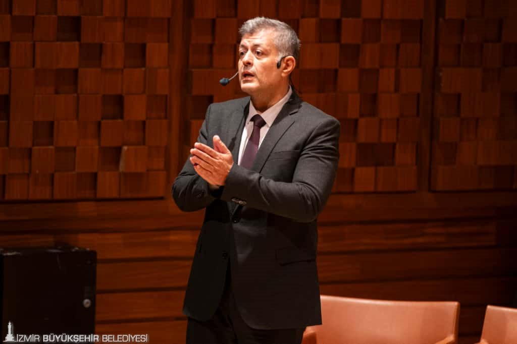 Sunumuyla birlikte kentin hem geçmişine hem de tasarlanan geleceğine dair bilgiler veren İZPA Başkanı Prof. Dr. Koray Velibeyoğlu, “İzmir üç kere kurulmuş bir kent. Bu süreklilik çok önemli. Kentin dirençliliği kentin tarihinden kaynaklanıyor. Savaşlar, salgınlar, hastalıklar, iklimsel olaylar etkilemiş. Kentin tüm bunlara rağmen ayakta kalması bugün bizim övündüğümüz İzmir’in 8 bin 500 yıllık tarihinin ne kadar çetin olduğunu gösteriyor” dedi.