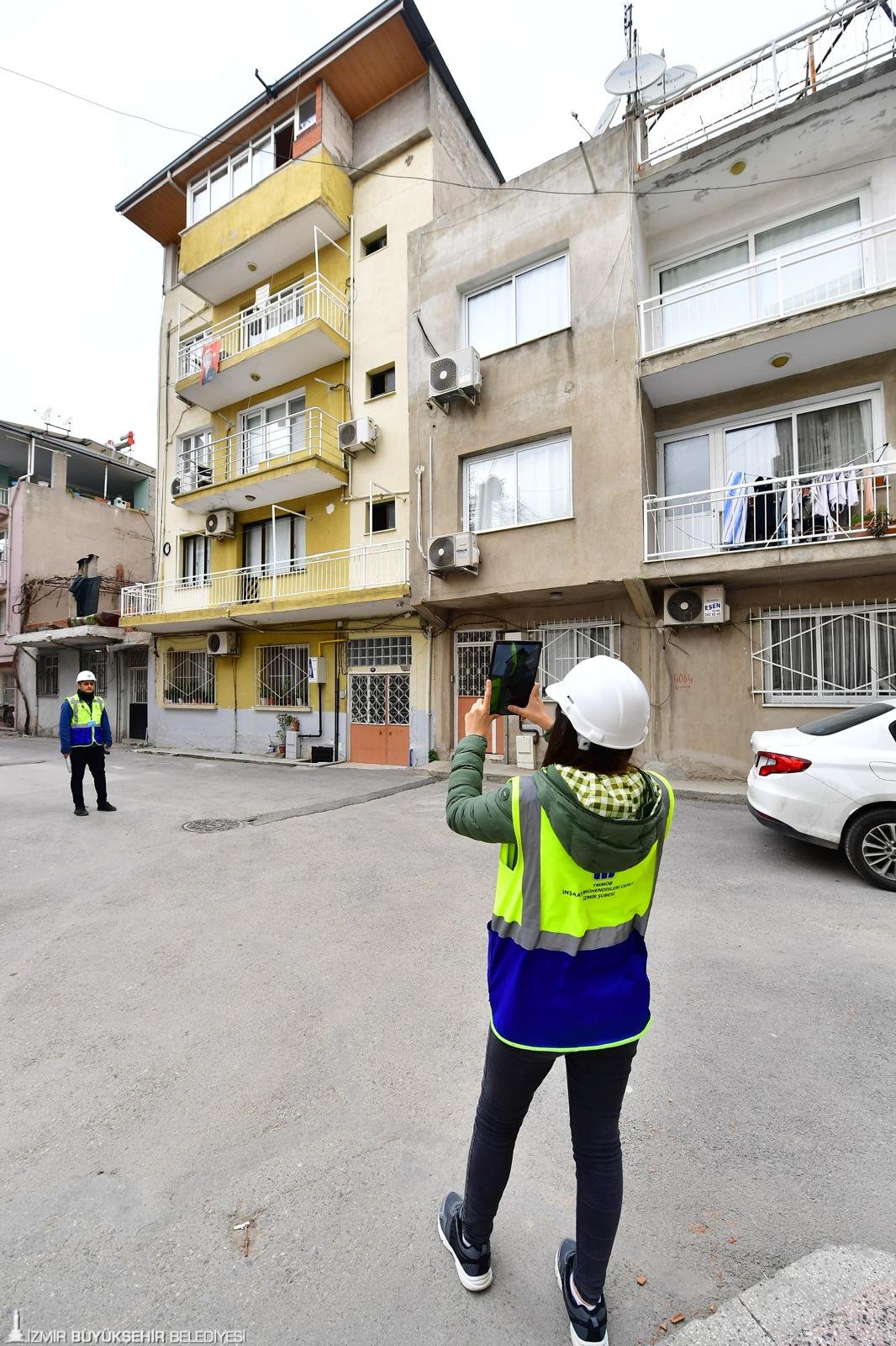 Yapı envanteri ve zemin çalışmalarıyla beraber kara ve denizde depremsellik araştırması yürüten Büyükşehir, bütünlüklü bir bakış açısıyla İzmir'i gelecekte etkisine alabilecek riskleri belirliyor. Türk Mühendis ve Mimar Odaları Birliği (TMMOB) İnşaat Mühendisleri Odası İzmir Şubesi ile imzalanan protokoller çerçevesinde, Bayraklı ve Bornova’da 94 bin 773 bina incelendi. Her iki ilçedeki konut türü yapıların envanteri bilimsel yöntemlerle çıkarılarak, deprem etkisindeki davranışına göre önceliklendirilmesi tamamlandı. Ayrıca, çalışma kapsamında bina kimlik belgesi sistemi de geliştirilerek, envanteri tamamlanan her binaya ait bir kimlik belgesi oluşturuldu. Böylece yurttaşlar o bina hakkındaki ruhsat, mimari proje bilgilerinin yanı sıra en yakın toplanma alanı gibi bilgilere hızlı ve doğrudan erişim sağlıyor.