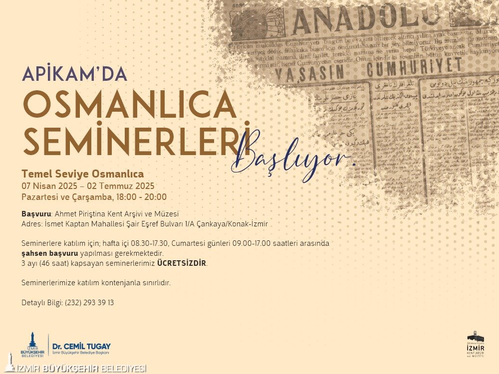 Mayıs ayında kentin farklı noktalarında seminer ve sergiler yer alacak. Gizem Güngördü Ercengiz küratörlüğünde Çağın İçinden Çizginin Dışından karma sergi, Kültürpark Atlas Pavyonu’nda 23 Nisan-15 Haziran tarihleri ve 10.00-17.00 saatleri arasında ziyaret edilebilecek. Ahmet Piriştina Kent Arşivi ve Müzesi (APİKAM) ise 7 Nisan-2 Temmuz tarihleri arasında “Osmanlıca Seminerleri”ni tekrar düzenleyecek. Küratörlüğünü Aybala Yentürk ve Nejat Yentürk’ün, proje koordinatörlüğünü ise İzmir Büyükşehir Belediyesi Kent Arşivi ve Müzeler Şube Müdürü Dr. Serhan Kemal Saygı’nın yaptığı YANIK YURT - Kurtuluş Savaşı’nda İzmir ve Batı Anadolu Yangınları sergisi ise APİKAM’da 20 Haziran’a kadar ziyaretçilerini ağırlamaya devam edecek.