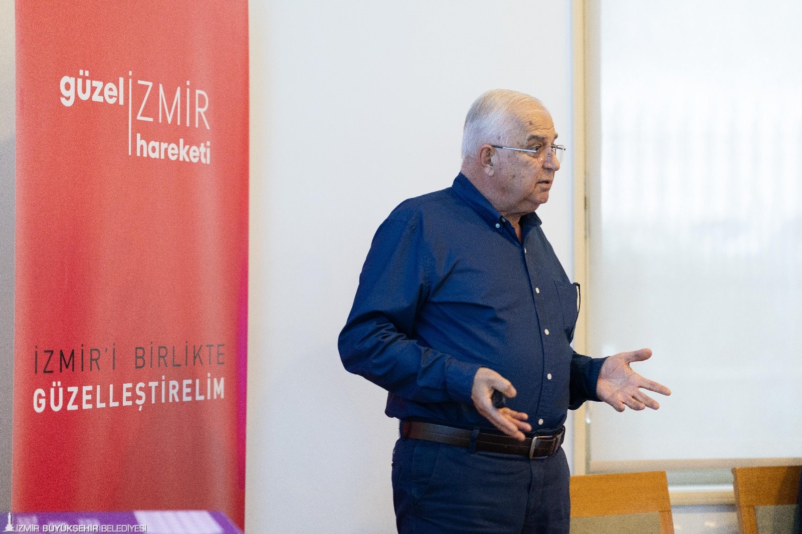 Yüksek mimar Salih Seymen de “Göl ve Ada Gazinosu’nun Mekânsal Serüveni” temasıyla sunum yaptı. Seymen, “Bu serüveni başlatan Behçet Uz’dur. Kültürpark’ı yokluktan yaratan bir belediye başkanı. Olanak hakikaten yok, ilk Kültürpark’ın duvarlarından başlıyorlar. O günlerde atlara verilecek arpa yok, halimiz bu ama Kültürpark yapılıyor. Çünkü modernizmin, kültürün, Batı’nın girişi İzmir. Kültürpark Batı’ya dönük ciddi bir eylem. Mimaride de İzmir öncü şehirdir. Fuar ve Kültürpark İzmir’i tarif eden ilk olgudur” ifadelerini kullandı.