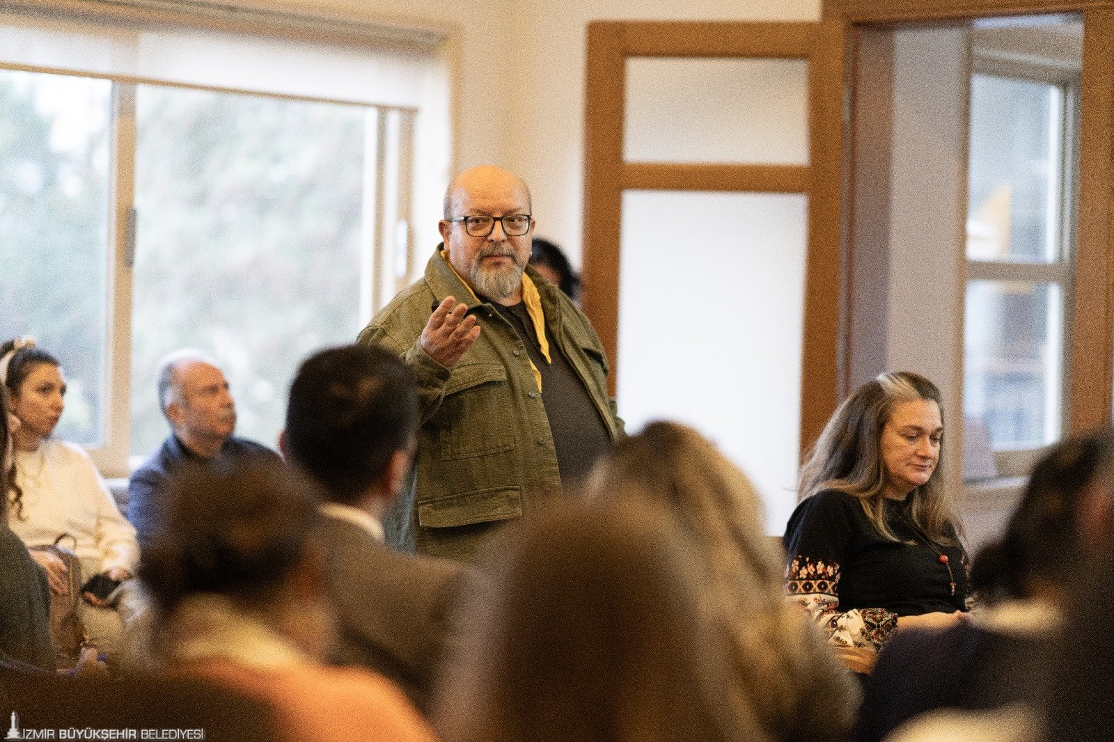 Araştırmacı ve koleksiyoner Nejat Yentürk ise “Dünden Bugüne İzmir’de Kamusal Buluşma Alanları ve Yemek Kültürü” başlığı kapsamında konuştu ve insanların kenti paylaştığı mekanlar üzerinden örnekler verdi. Yentürk, İzmir’in kafe, lokanta, restoran geçmişine değinirken toplumsal yaşama dair de, “İzmir bir liman kentidir. O dönem de arı kovanı gibi çalışan insan toplulukları var. Olabildiğince zaman kaybetmeden ve malının başından ayrılmadan yemeğini yemesi gerekiyor” diyerek sokak yiyeceklerinin kentte nasıl ana unsur haline geldiğinden söz etti.