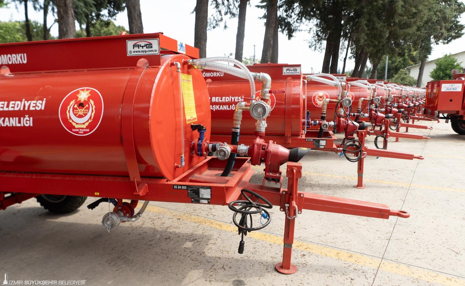 Küresel iklim krizi, artan sıcaklıklar, ormanlar üzerinde ciddi bir tehdit oluşturuyor. Tüm riskleri göz önünde bulunduran İzmir Büyükşehir Belediyesi, olası yangınlara erken müdahale için önlemlerini artırdı. Büyükşehir’in alevlerin büyümeden önlenmesini sağlamak için başlattığı seferberlik kapsamında orman köylerine, mayıs ayı sonuna kadar her biri 2.5 ton su kapasiteli 125 yangın söndürme tankeri dağıtılacak. Torbalı’daki bir fabrikada yapımı tamamlanan 40 tanker, gelecek hafta muhtarlara teslim edilecek. İzmir’in ilçelerinde şu anda 460 yangın söndürme tankeri bulunuyor.