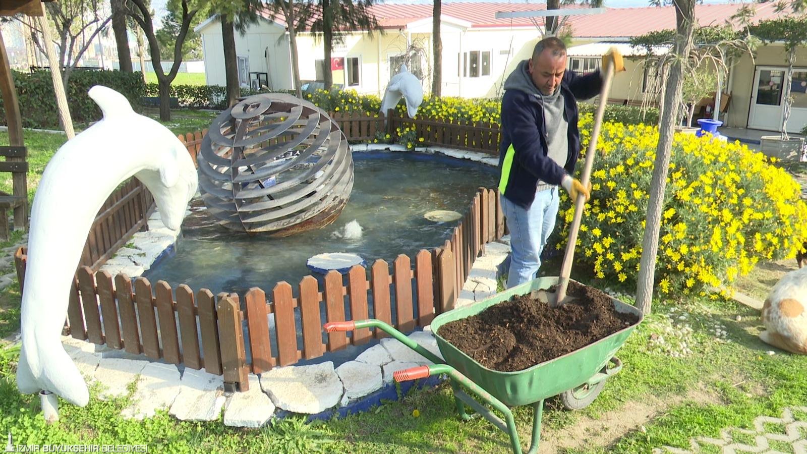 Çalışmalar hakkında bilgi veren İzmir Büyükşehir Belediyesi Park ve Bahçeler Dairesi Başkanlığı Ziraat Mühendisi Muzaffer Komutan, “Cemil Başkanımızın önderliğinde, Park ve Bahçeler Dairesi Başkanlığı’mızın MTK yerleşkesinde kompost ve biyokömür tesislerimizde yeşil alanlarımızdan gelen atıkları, İzmir Doğal Yaşam Parkı’ndan getirdiğimiz hayvan gübreleriyle karıştırıp, olgunlaştırıp gübre elde ediyoruz. Biyokömür tesisimizde ise atölyeden getirdiğimiz talaş malzemelerini ve patoz makinesinden çıkardığımız budak artıklarını biyokömür makinesinde yakarak inorganik madde olarak bitki kömürü elde ediyoruz. Sonuç olarak elde ettiğimiz organik ve inorganik maddeleri 5 bin metreküpe yakın hacimle tekrar yeşil alanlarımızda topraklarımızın yapısını iyileştirmek için kullanıyoruz. Böylelikle bir geri kazanım sağlamış oluyoruz” şeklinde konuştu.