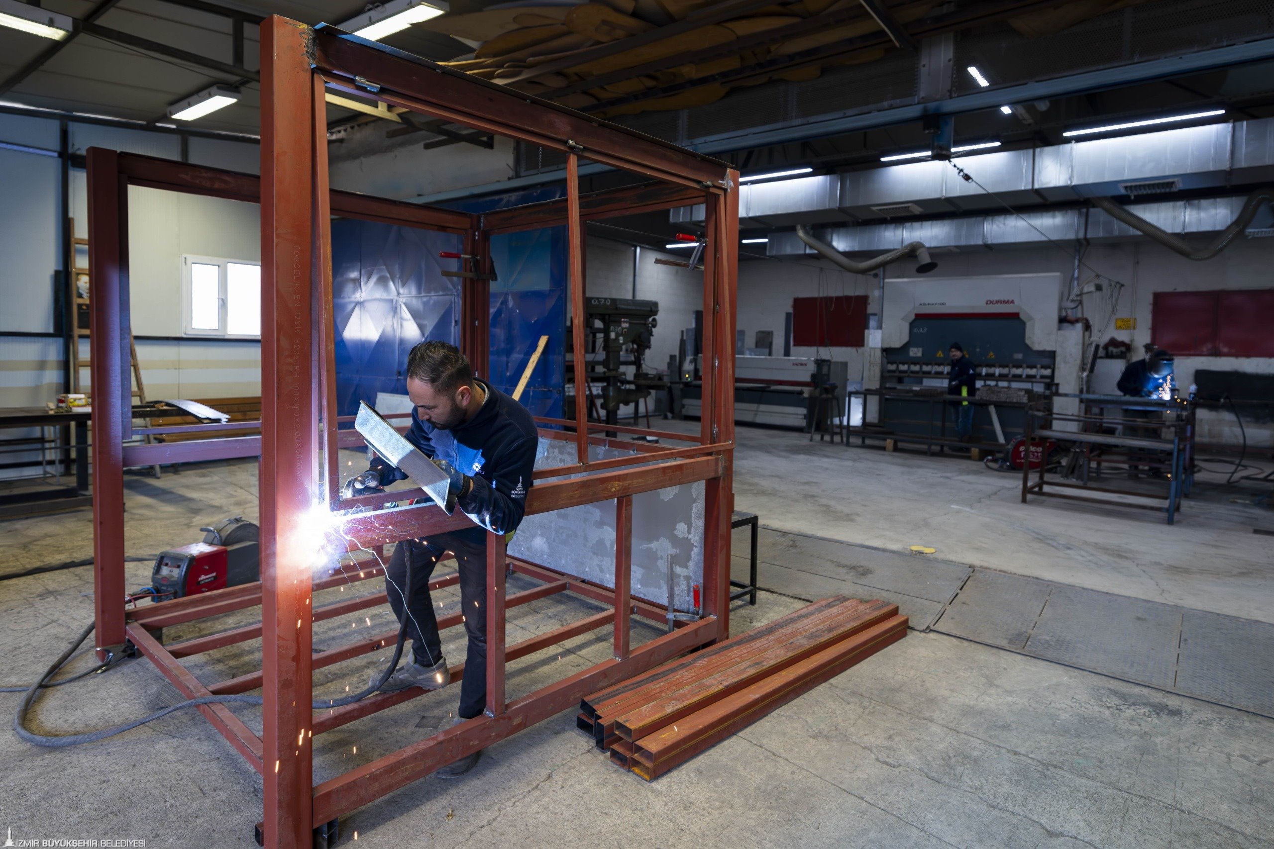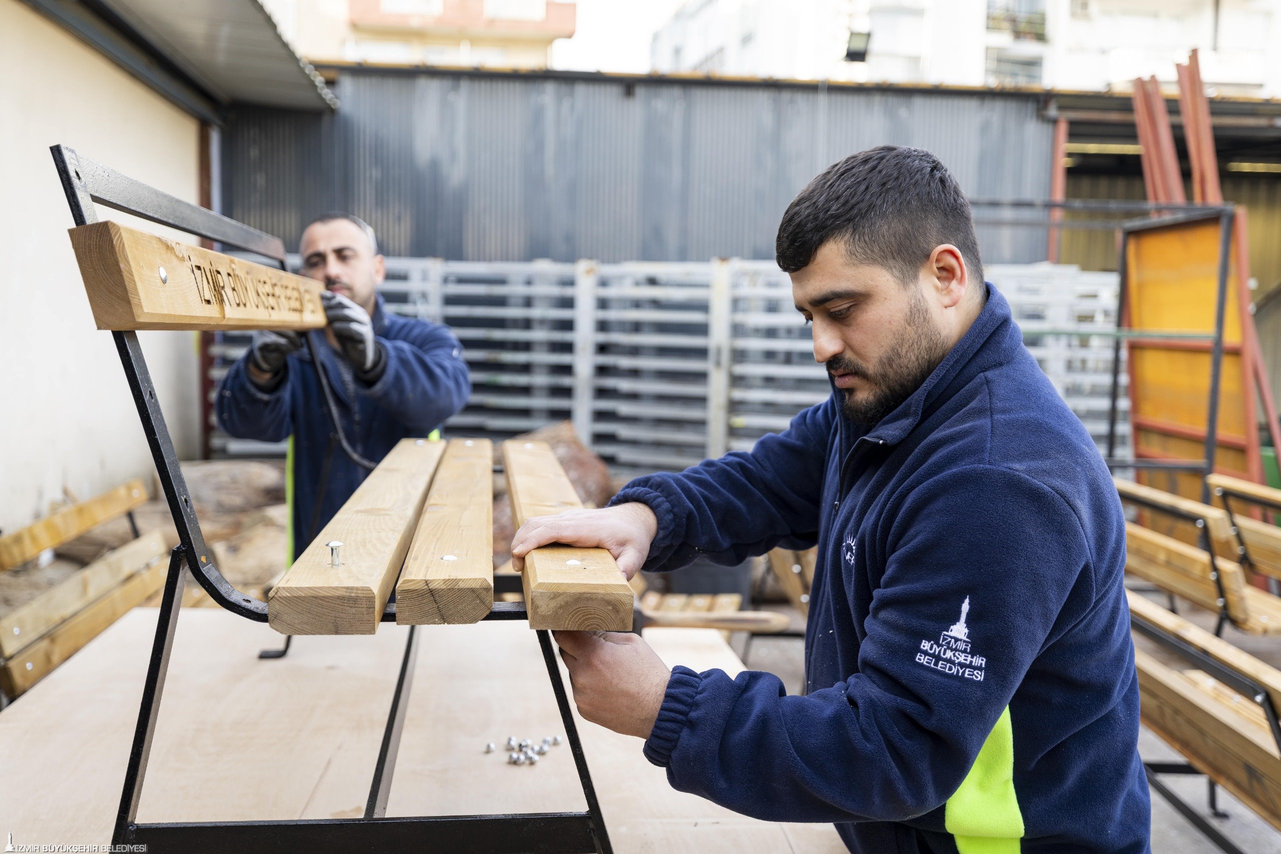İzmir Büyükşehir Belediyesi, kentin sosyal donatı alanlarında kullanılan ekipmanları kendi bünyesinde üreterek yenilemeye devam ediyor. Park ve Bahçeler Dairesi Başkanlığı Ağaçlandırma Şube Müdürlüğü bünyesindeki Buca’daki Fırat Atölyesi, profesyonel ekibiyle kent genelinde kullanılan çöp potalarından banklara, piknik masalarından kent mobilyalarına, uyarı levhalarından sokak hayvanları için beslenme ve barınma odaklarına, satış dükkânlarından yeni yıl fotoğraf alanlarına kadar çok sayıda şehir donatısını bünyesinde üretiyor. 2025 yılında 2 binin üzerinde bank, bin 600 adet çöp potası ve 600 piknik masası üretilerek İzmirlinin hizmetine sunulmak üzere montajları yapıldı. İzmir Büyükşehir Belediyesi, kendi bünyesinde yürüttüğü bu uygulamayla hem yaşamı kolaylaştıracak estetik yeni tasarımları kente kazandırıyor hem de önemli ölçüde tasarruf sağlıyor.