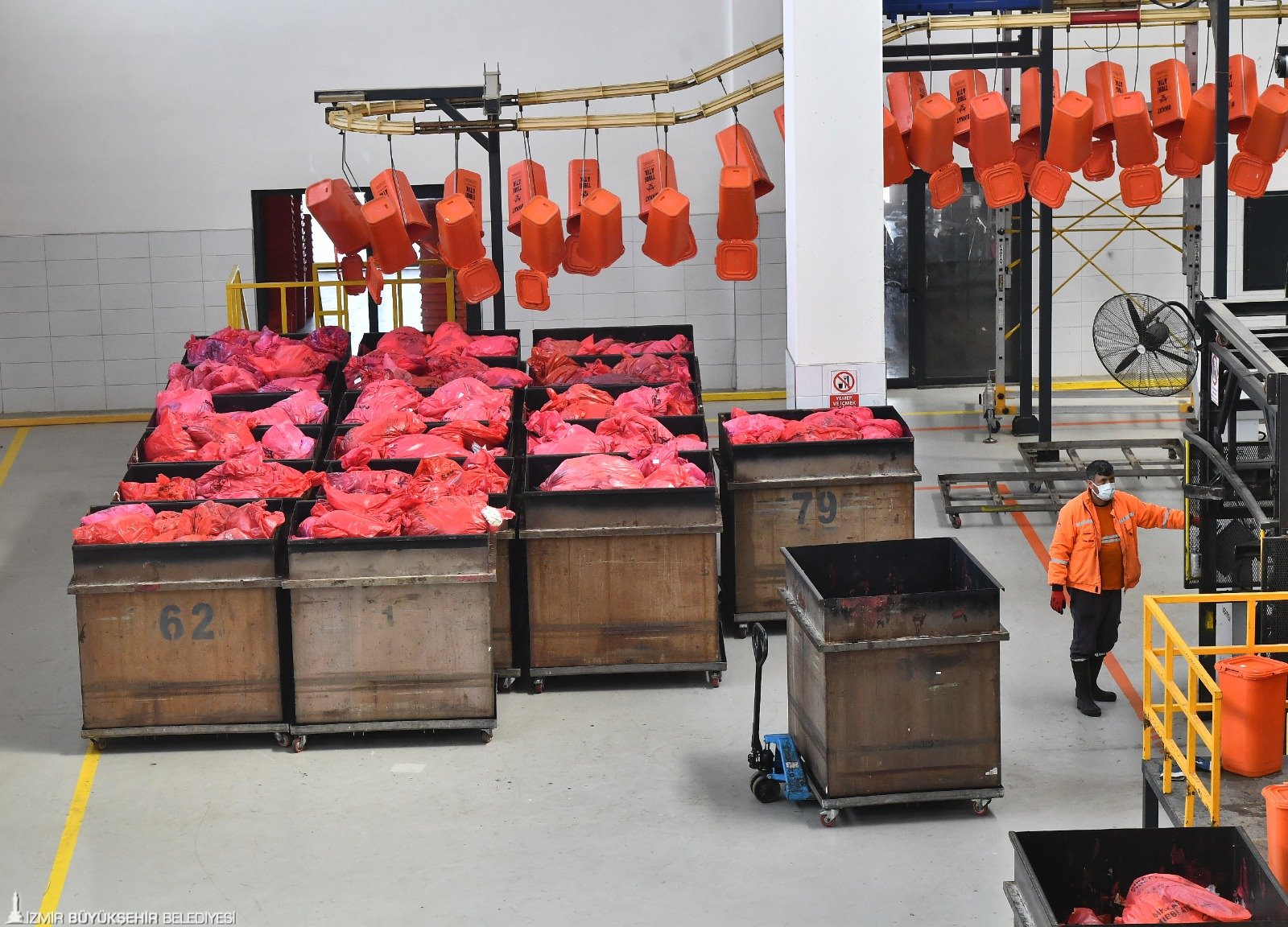 İzmir Büyükşehir Belediyesi İklim Değişikliği ve Sıfır Atık Dairesi Başkanlığı Atık Yönetim Tesisleri Şube Müdürü Seyda Yapıcı, 7 gün 24 saat faaliyette olan tesisin İzmir için son derece önemli olduğunu vurguladı. Kurumlardan kovalar ve konteynerlerle toplanarak tesise getirilen atıkların, 150 santigrat derecede 45 dakika boyunca prosesten geçirildiğini anlatan Seyda Yapıcı, bu işlemin ardından atığın kırıcı denilen makinelerden geçirilerek küçültüldüğünü, arındırıldıktan sonra evsel atık niteliği kazandığını söyledi. Bu işlemlerin ardından tehlikeli atığın, sağlık açısından taşıdığı riskler ortadan kaldırılıyor.