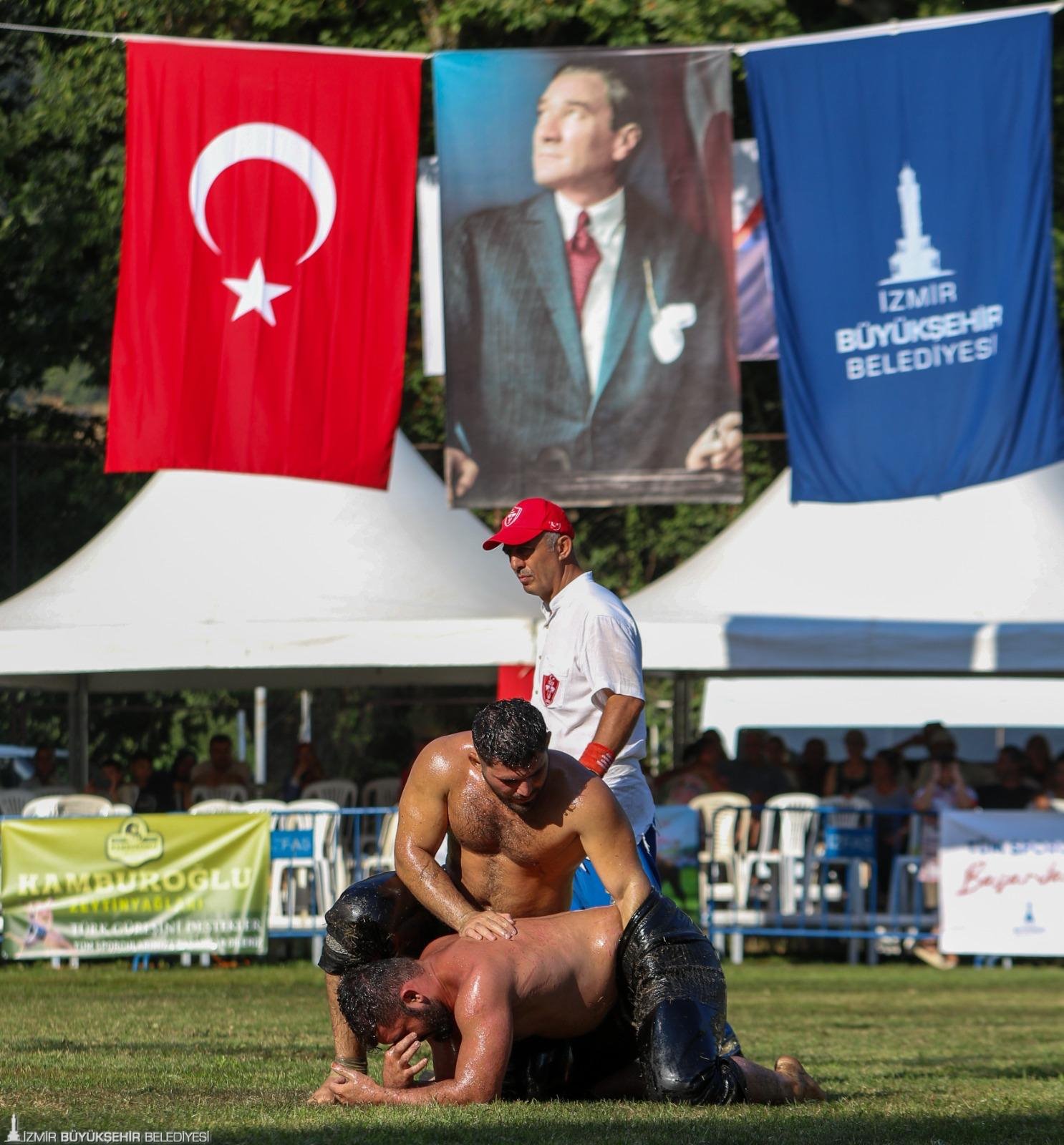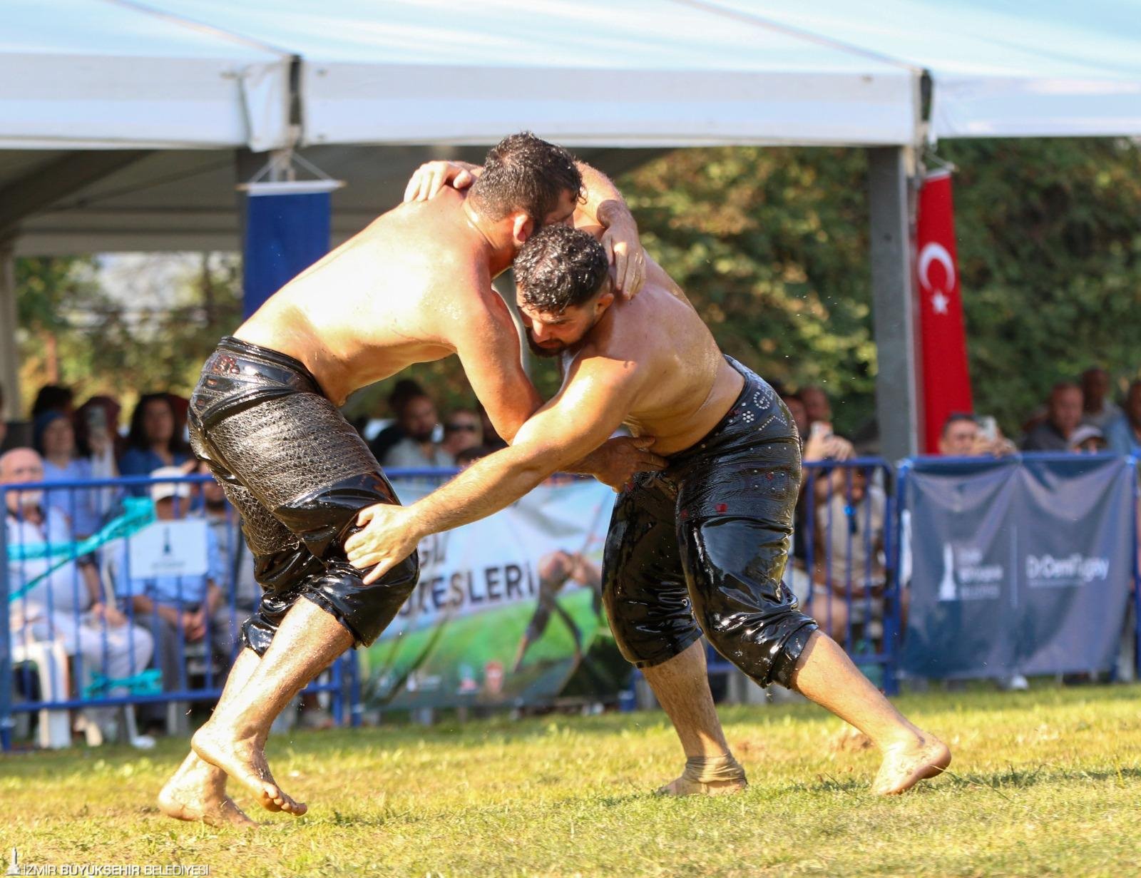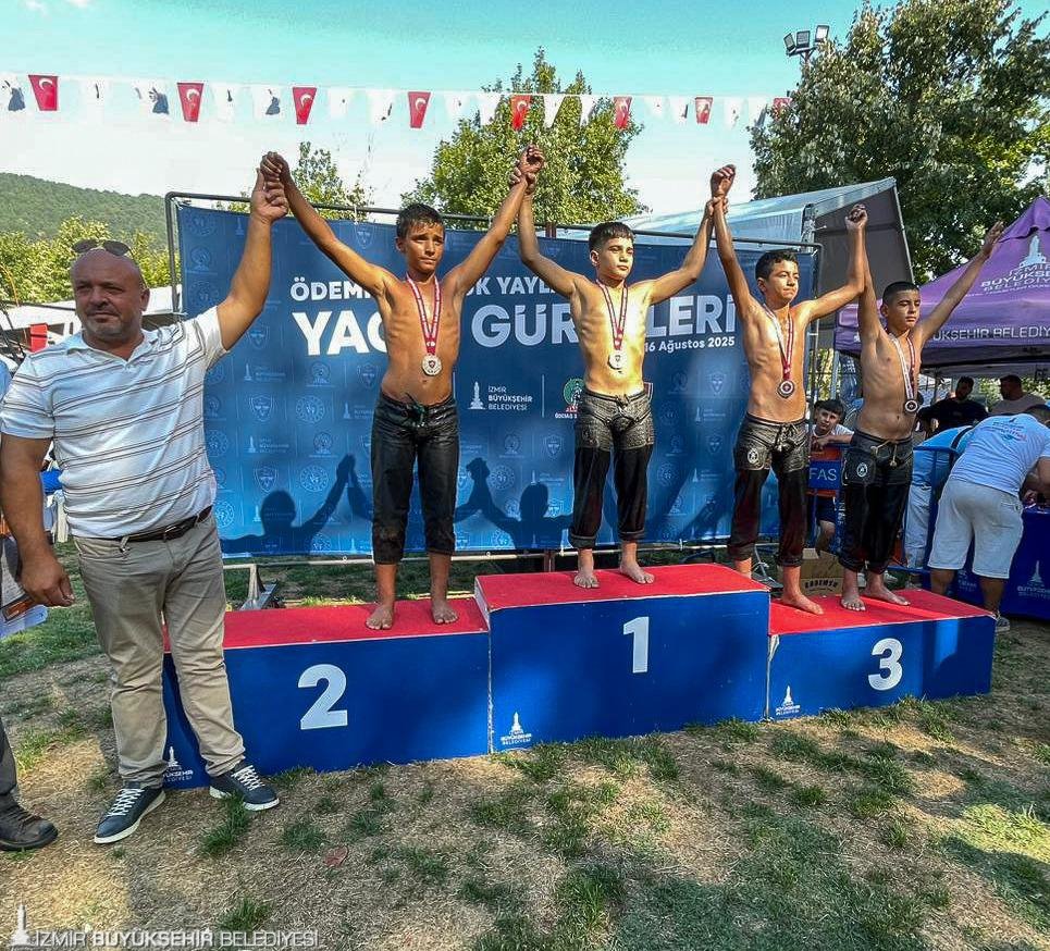 Ödemiş Gölcük Yaylası’nda büyük ilgi gören yağlı güreşler, hem kıyasıya mücadelelere hem de izleyiciler için unutulmaz bir spor şölenine ev sahipliği yaptı.