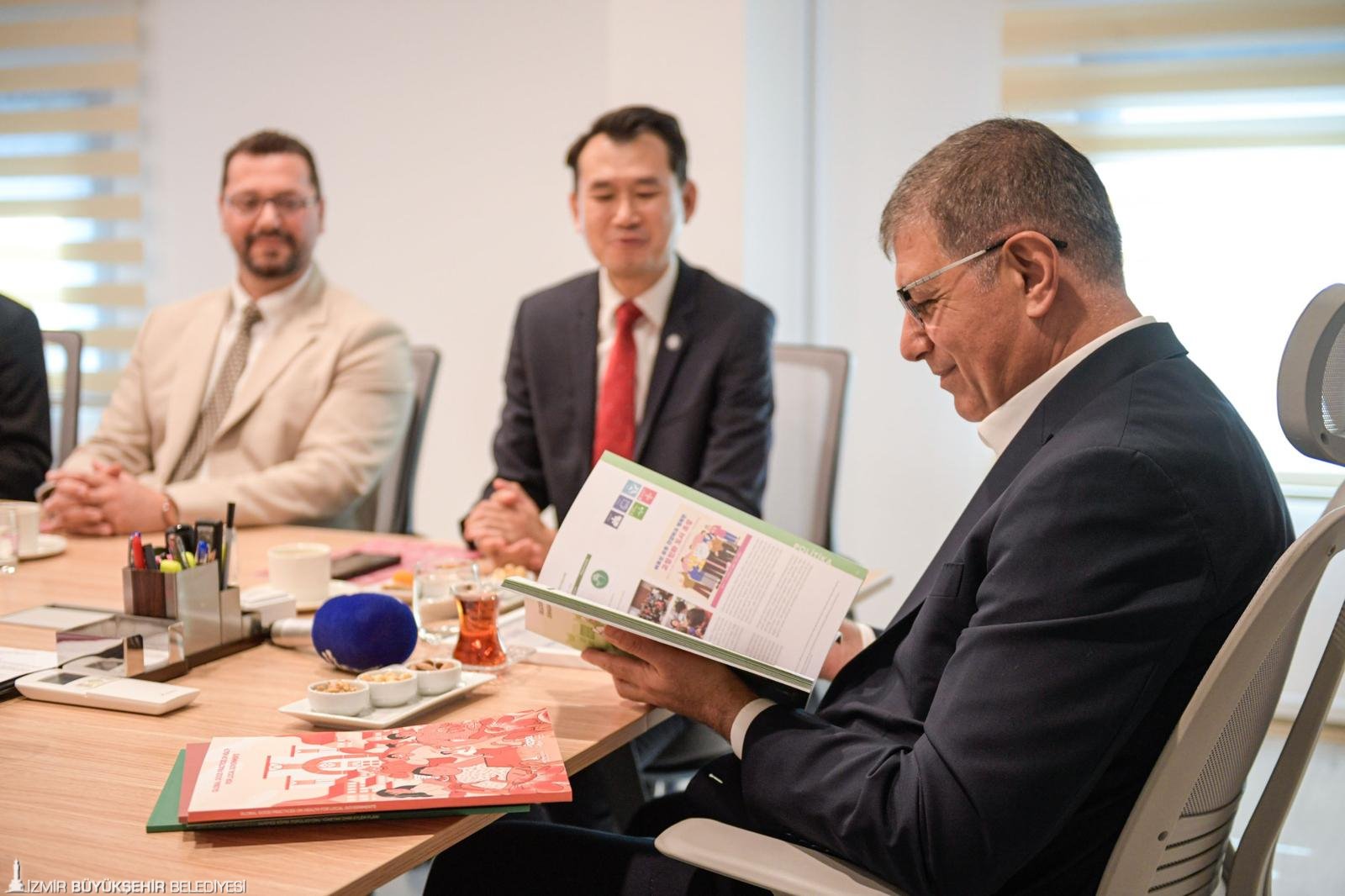 Dünya Sağlık Örgütü tarafından kurulan Yaşlı Dostu Şehirler ve Topluluklar Küresel Ağı’na kabul edilerek yaşlı dostu politikalarını uluslararası standartlara taşımak adına önemli bir adım atan İzmir Büyükşehir Belediye Başkanı Dr. Cemil Tugay, Dünya Sağlık Örgütü Avrupa Bölgesi Yaşlanma Ve Sağlık Teknik Sorumlusu Dr. Yongjie Yon’u ağırladı. Yongjie Yon, Başkan Tugay’a Yaşlı Dostu Şehirler ve Topluluklar Küresel Ağı sertifikasını takdim etti. Programda Türkiye’den ağa üye olan iki büyükşehirden biri olma özelliğini taşıyan İzmir Büyükşehir Belediyesi’nin, ileri yaşlı bireylere yönelik hizmetleri ile öne çıktığına dikkat çekildi. Toplantıya İzmir Büyükşehir Belediyesi Genel Sekreter Yardımcısı Prof. Dr. Pınar Okyay ve Sağlık İşleri Dairesi Başkanı Ahmet Soner Emre, Dünya Sağlık Örgütü Türkiye Ofisi Halk Sağlığı Uzmanı Doç. Dr. Tufan Nayır da katıldı.