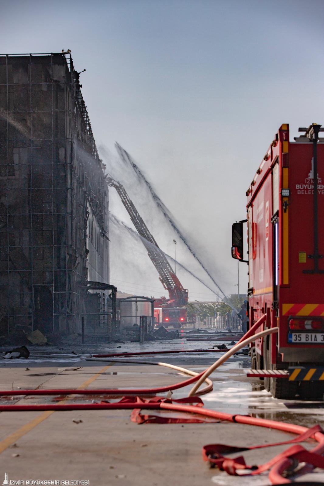 İzmir Büyükşehir Belediyesi İzmir İtfaiyesi, Aliağa Organize Sanayi Bölgesi’nde faaliyet gösteren demir-çelik, demir işleme fabrikasında saat 16.30 sıralarında çıkan yangına hızla müdahale etti. Aliağa Organize Sanayi Bölgesi itfaiye grubundan arazöz tonaj, Aliağa grubundan ise arazöz merdiven tonaj ve endüstriyel araçla müdahaleye başlandı. Yaklaşık 40 bin metrekare alanda üretim yapan fabrikada çıkan yangın itfaiye ekiplerinin hızlı müdahalesi ile kontrol altına alındı.