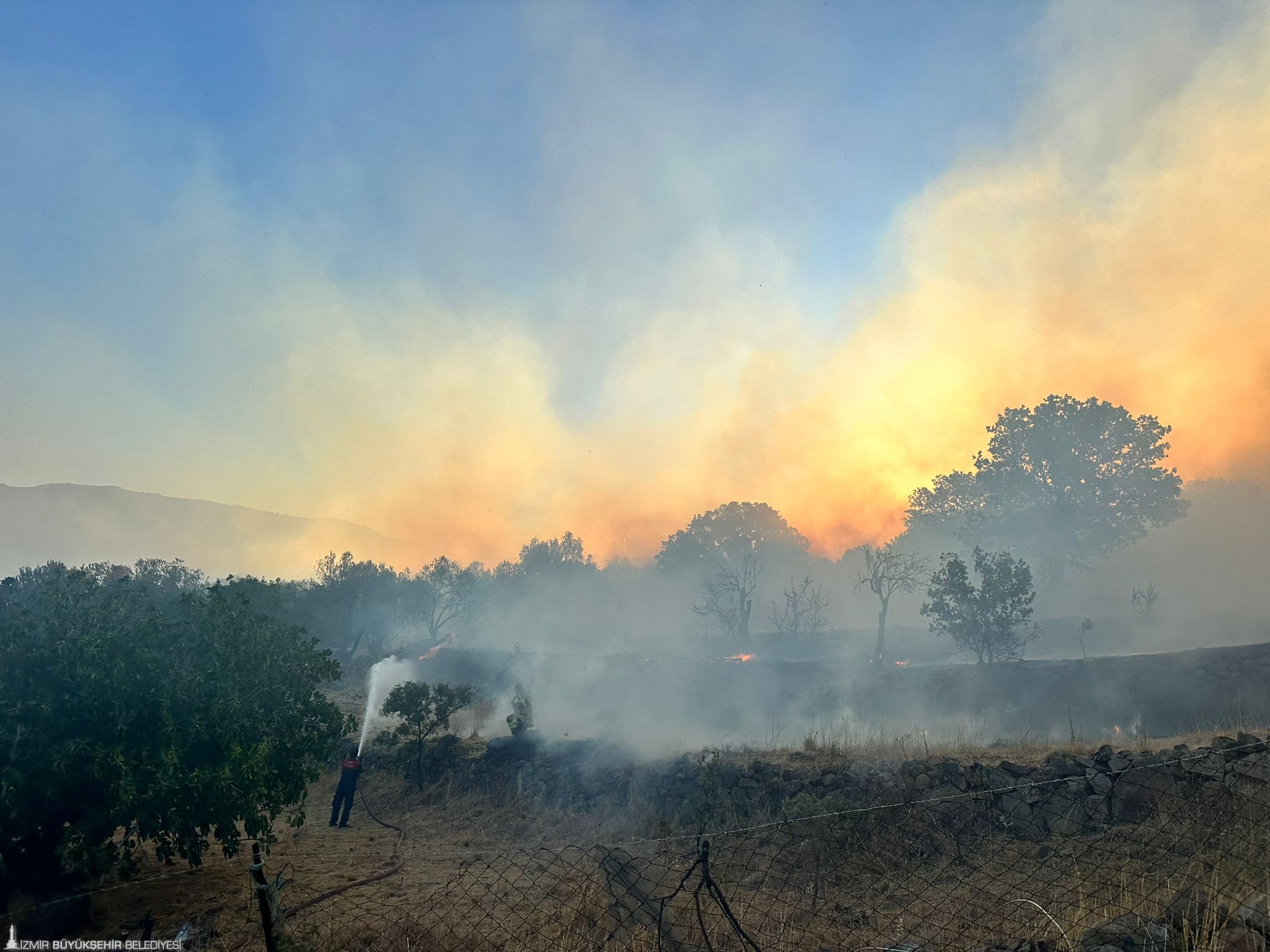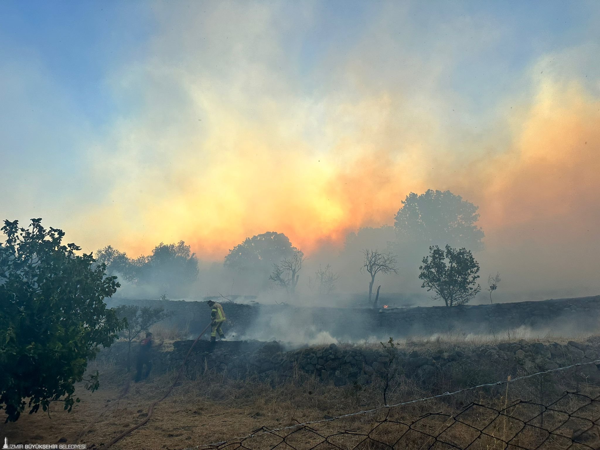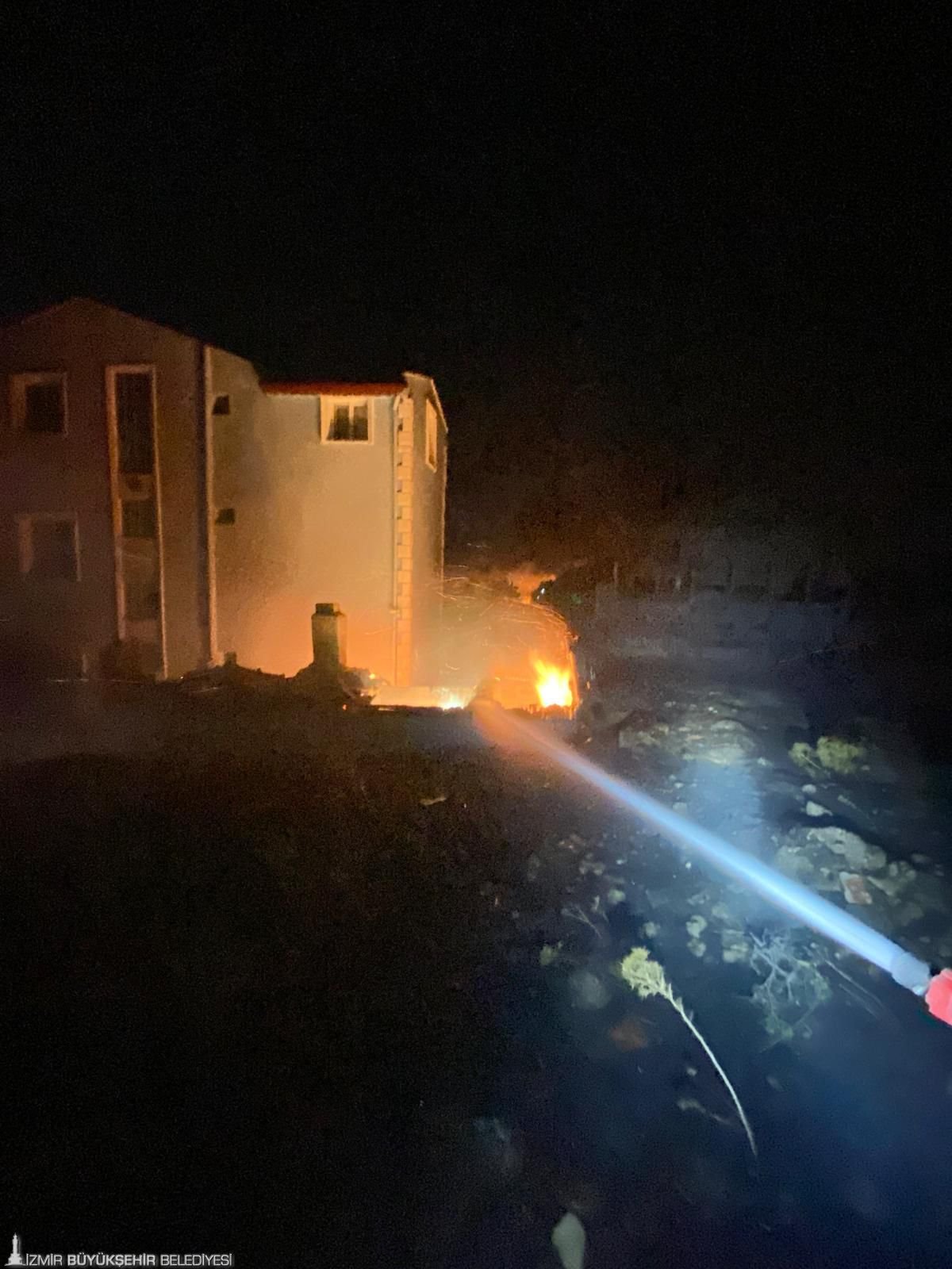 Çandarlı’da bir sitedeki otluk alanda çıkan yangın şiddetli rüzgarın etkisiyle kısa sürede büyüdü. Saat 02.45’de yapılan ihbarın ardından olay yerine ulaşan İzmir Büyükşehir Belediyesi İtfaiyesi’nin 18 araç ve 54 personeli, Orman Bölge Müdürlüğü ekipleri ile birlikte alevlere müdahalede bulundu. Sitede yaşayan vatandaşlar güvenlik gerekçesiyle jandarma ekipleri tarafından tahliye edildi. Site içerisindeki 7 ev tamamen, 4 ev ise kısmen yangından zarar gördü. Rüzgarın etkisini sürdürdüğü bölgede alevler kısmen kontrol altına alındı. Ekipler rüzgar nedeniyle devam eden yayılma riskine karşı çalışmalarını sürdürüyor.