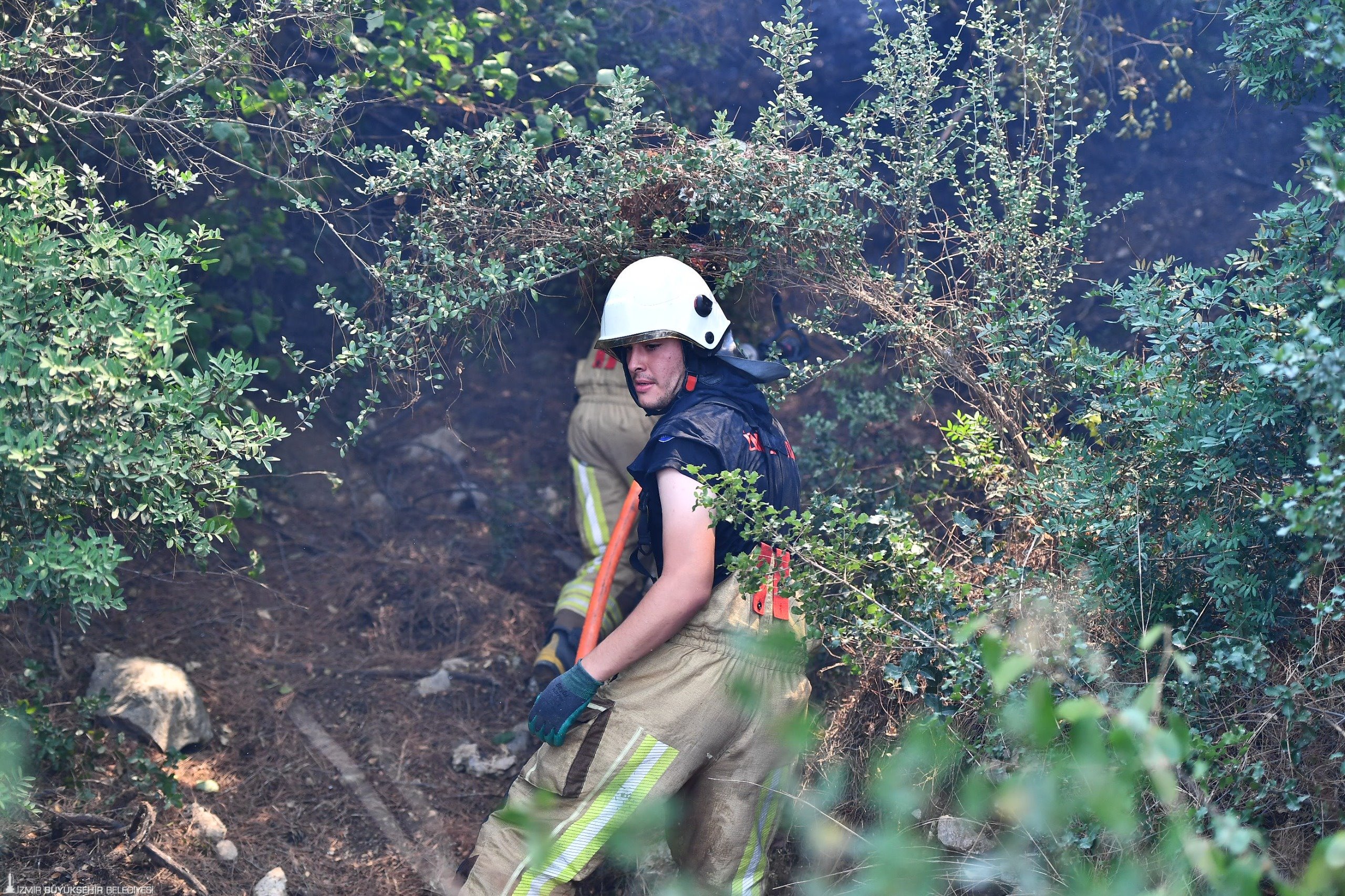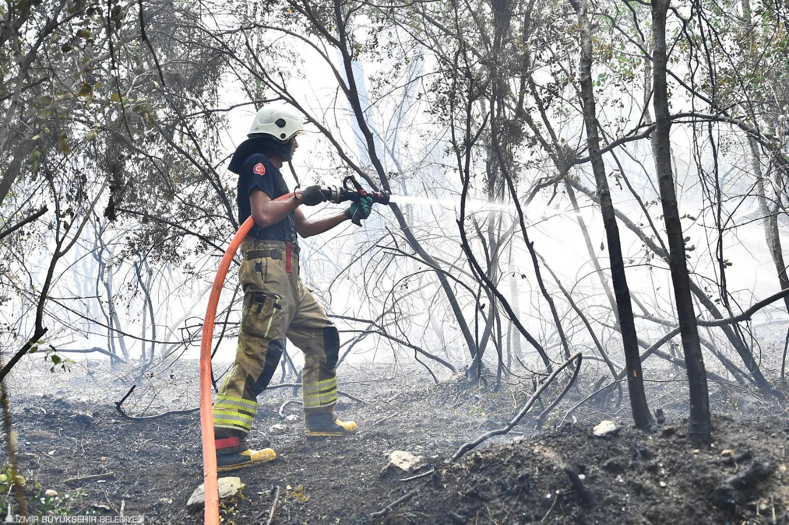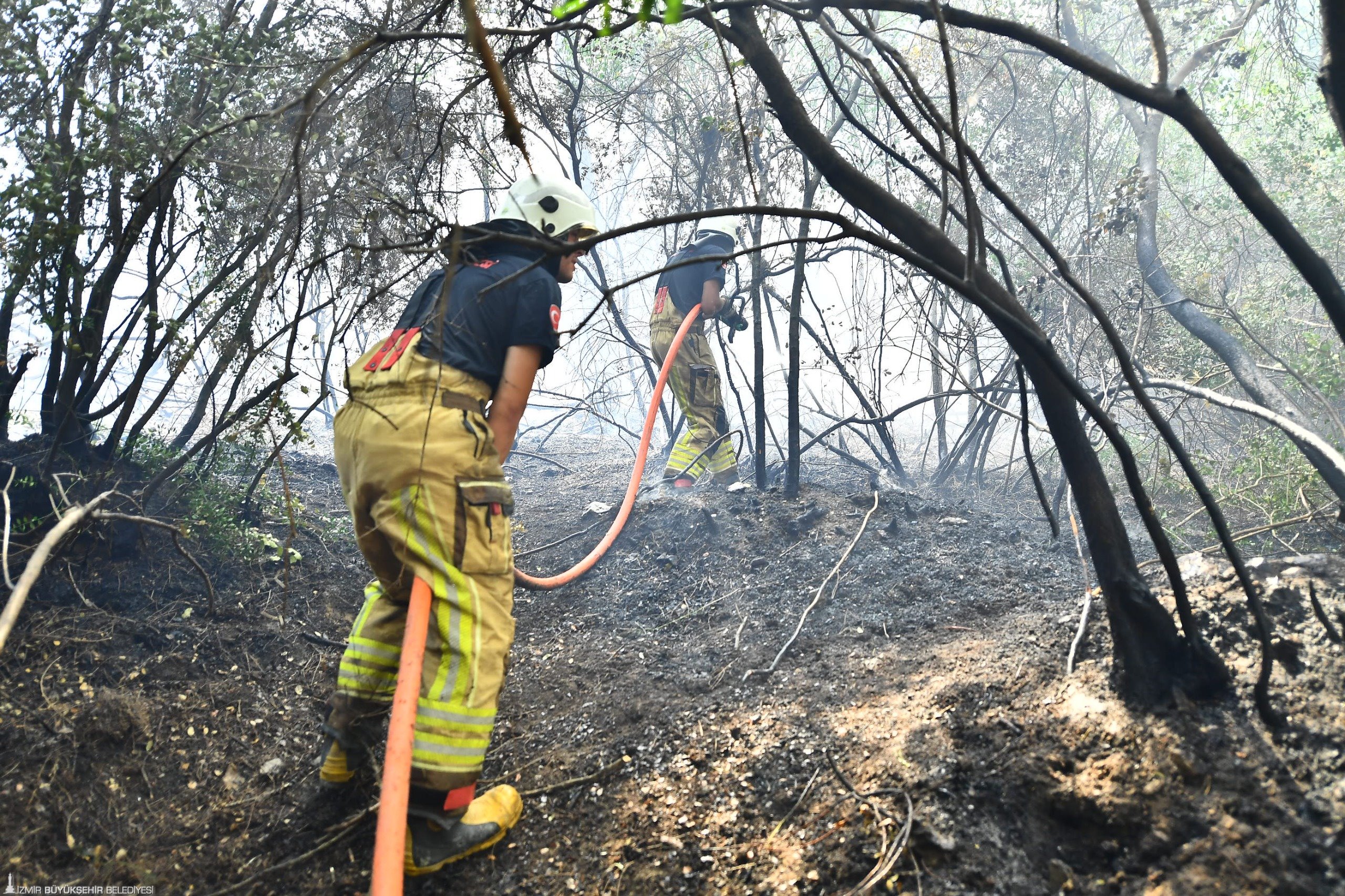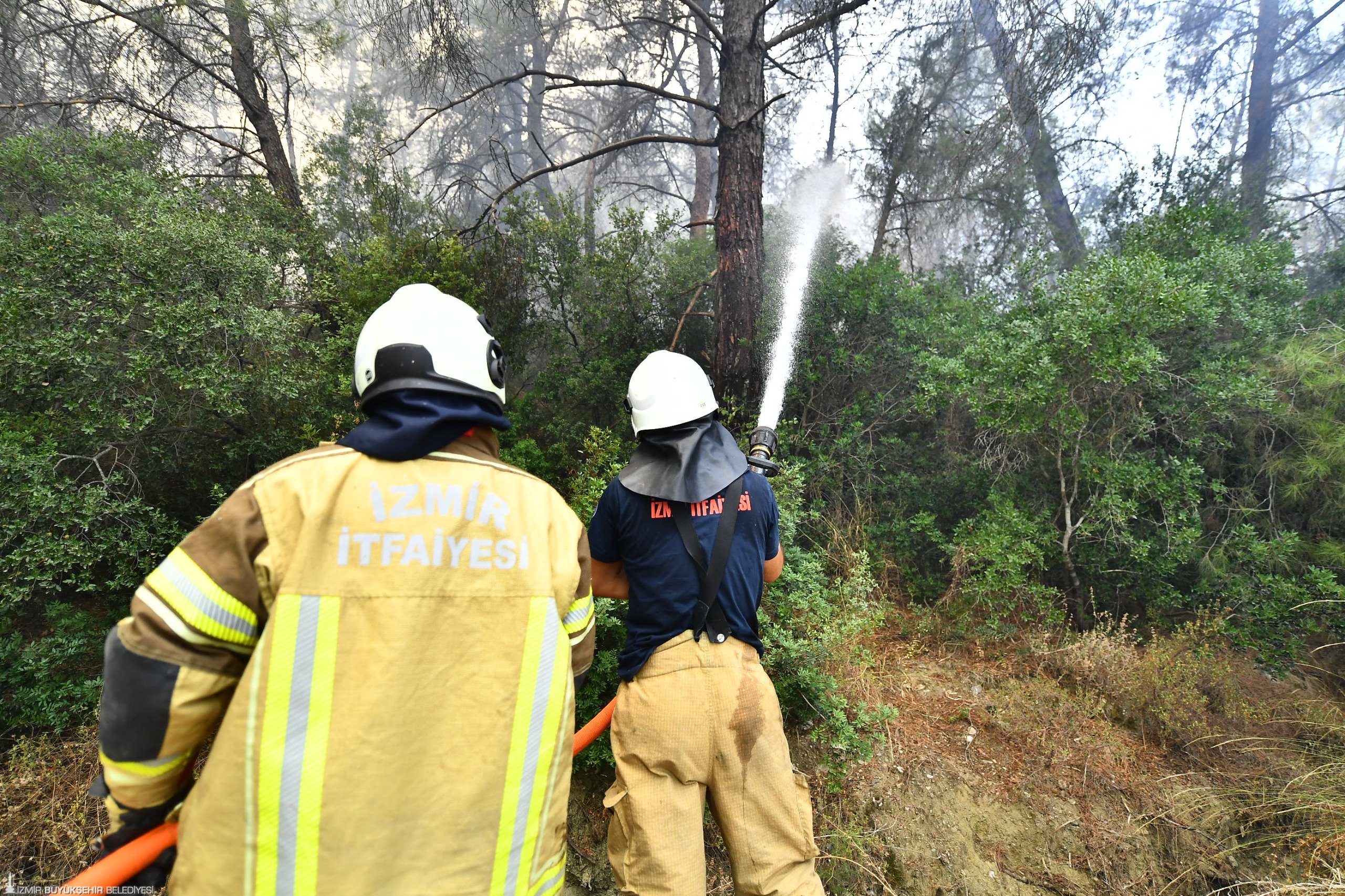 İzmir’in Menderes ilçesinde öğle saatlerinde başlayan orman yangını, rüzgârın da etkisiyle kısa sürede geniş bir alana yayıldı. Yangına İzmir Büyükşehir Belediyesi İtfaiye ekipleri ile İzmir Orman Bölge Müdürlüğü ekipleri müdahale ediyor. Alevlerle mücadeleye muhtarlar ve gönüllüler de İzmir Büyükşehir Belediyesi’nin köylere dağıttığı su tankerleriyle destek veriyor.