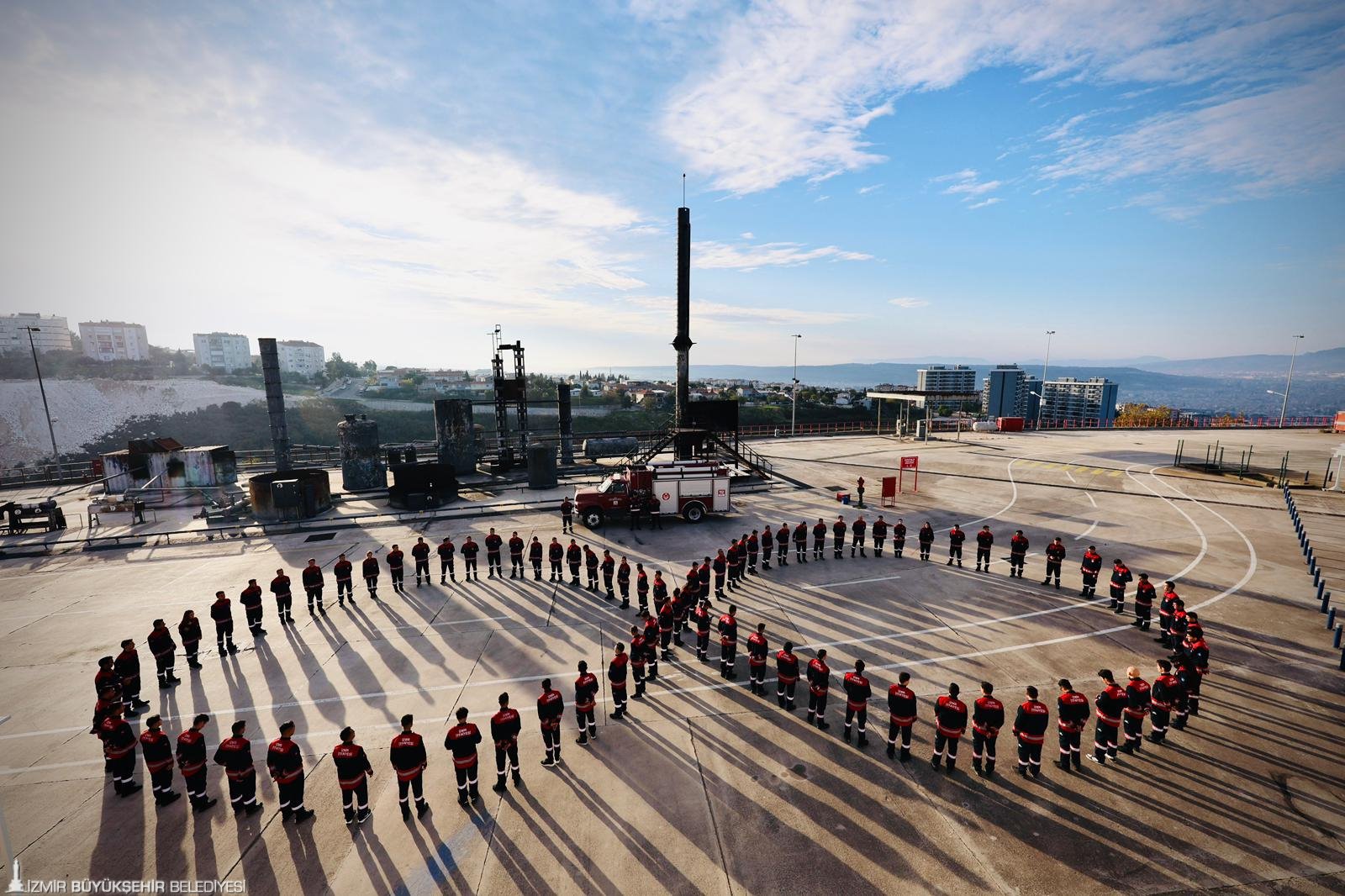 Anlamlı günde, İtfaiye Yangın ve Doğal Afet Eğitim Merkezi’nde 84 itfaiye personeli bir araya gelerek oluşturdukları sonsuzluk simgesiyle Atatürk’e duydukları sevgi, saygı ve minneti simgeledi. İzmir İtfaiyesi personeli, bu özel koreografiyle Atatürk’ün fikirlerinin ve Cumhuriyet değerlerinin sonsuzluğa taşındığı mesajını verdi.