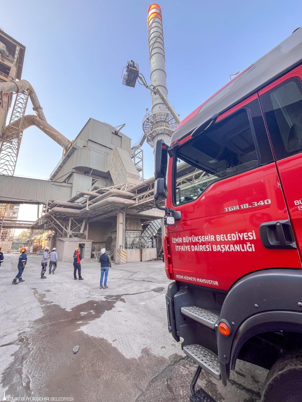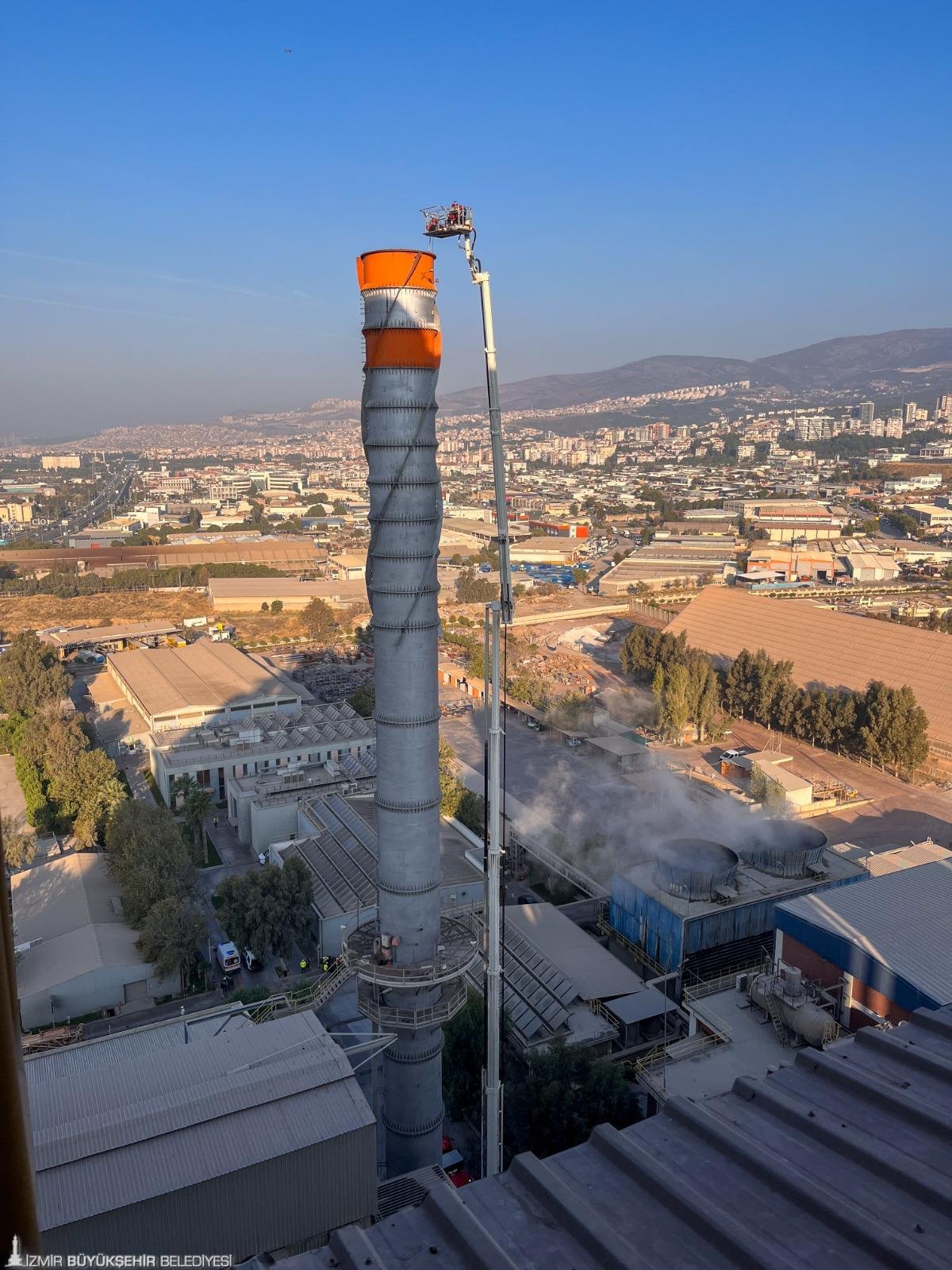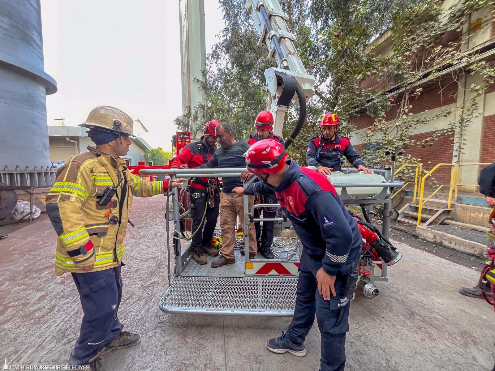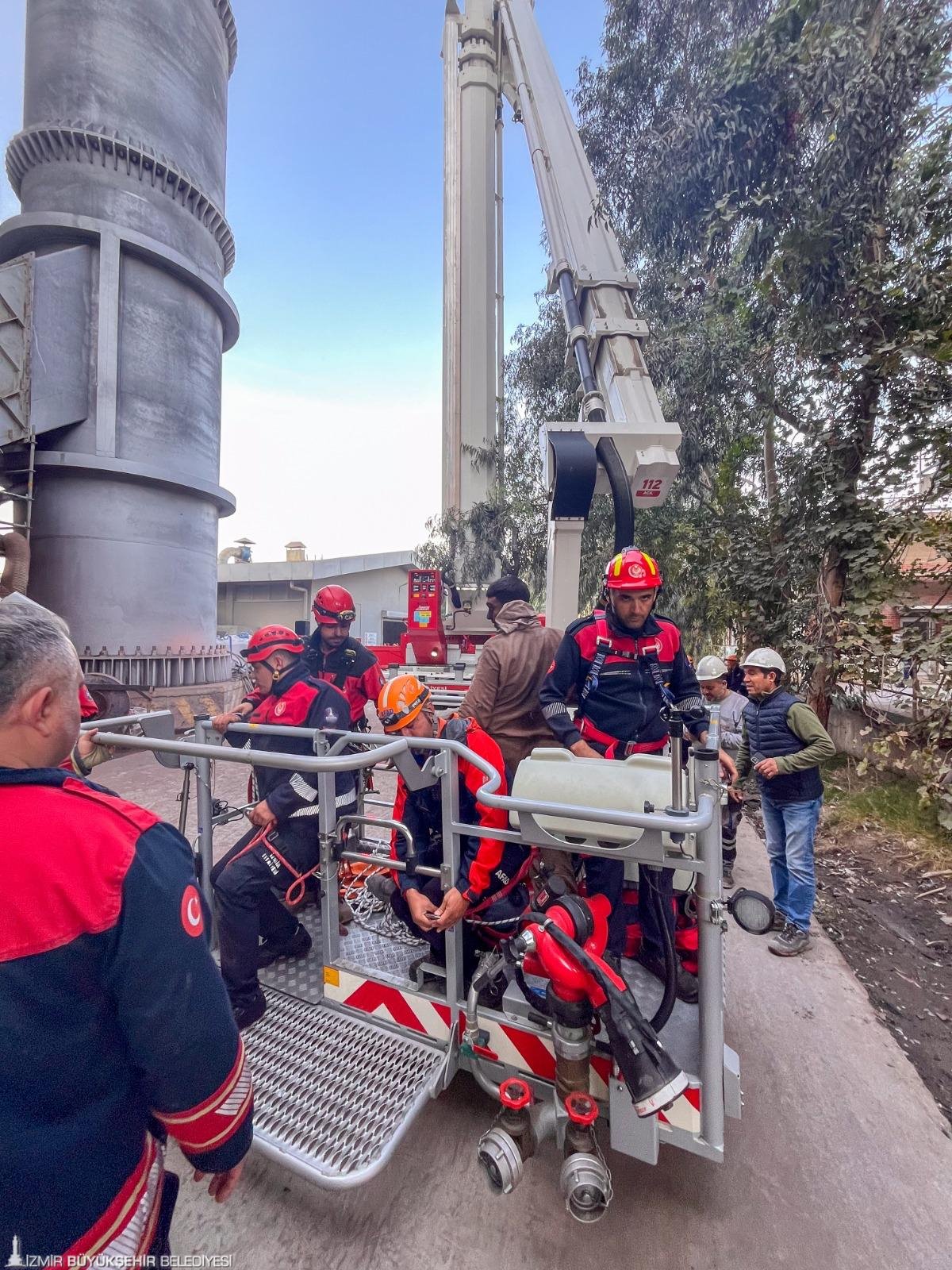Bornova’da Ankara Caddesi üzerinde bulunan bir çimento fabrikasına ait 70 metre yüksekliğindeki bacaya temizlik amacıyla çıkan 2 işçi, iskelenin çökmesi sonucu yaklaşık 10 metre aşağıya düşerek baca içerisinde mahsur kaldı. Olayın ihbar edilmesi üzerine bölgeye İzmir Büyükşehir Belediyesi İtfaiye Dairesi Başkanlığı ve AFAD ekipleri sevk edildi. Ekipler, 90 metrelik merdivenli araçla bacanın üst kısımlarına doğru çıkarak işçilere ulaştı. Ekipler, yaklaşık dört saatlik titiz ve kontrollü çalışmaların ardından işçileri mahsur kaldıkları yerden kurardı. Sağlık durumlarının iyi olduğu belirlenen işçiler, tedbir amacıyla 112 Acil Sağlık ekiplerine teslim edildi.