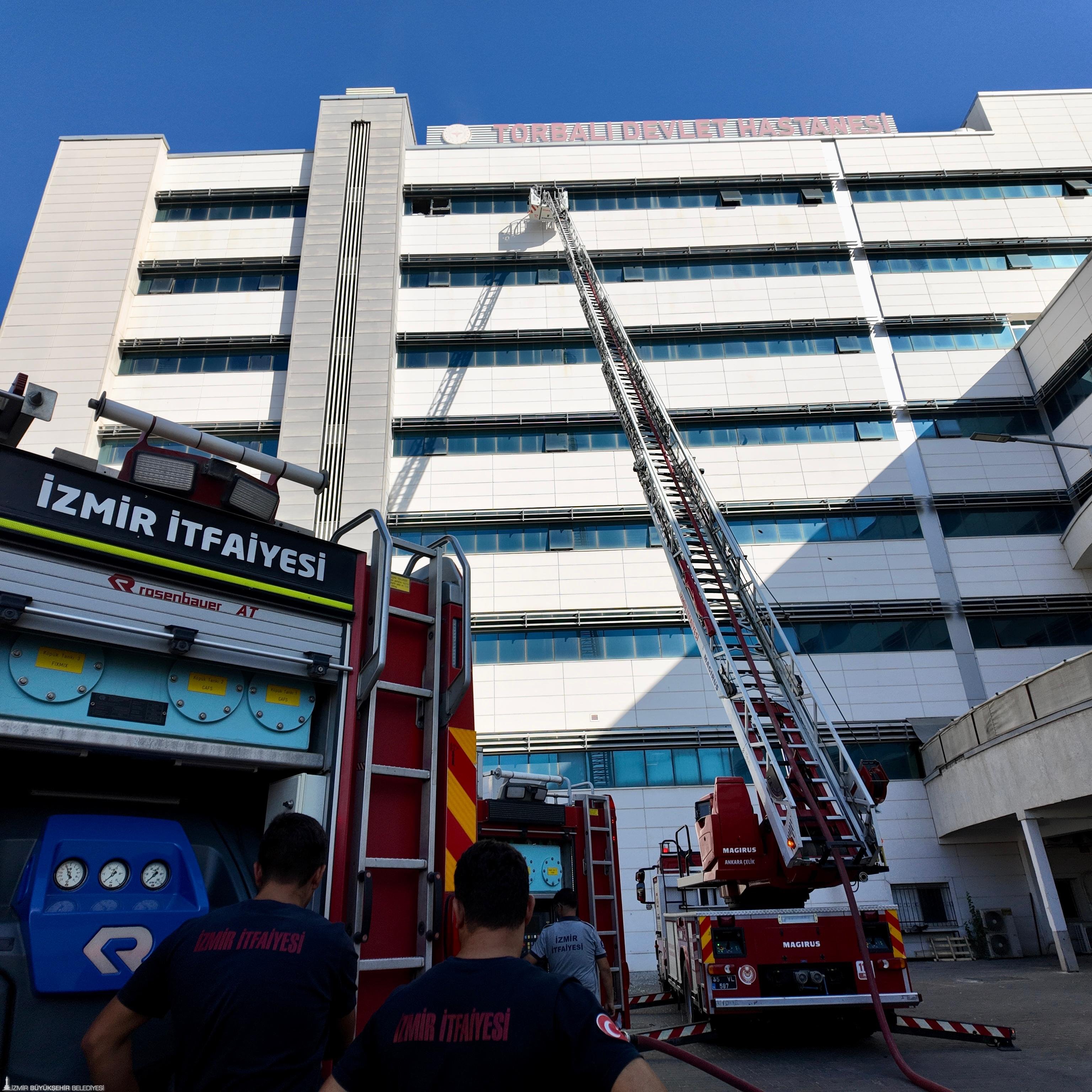 İzmir Büyükşehir Belediyesi İtfaiye Dairesi Başkanlığı ekipleri, saat 8.50 sıralarında Torbalı ilçesi 7 Eylül Mahallesi’nde bulunan Torbalı Devlet Hastanesi’nde çıkan yangına sevk edildi. Binanın 6. katında bulunan ve mutfağa ait erzak deposu olarak kullanılan alanda çıktığı belirlenen yangına, İzmir İtfaiyesi, 7 arazöz, 2 merdivenli araç, 1 kurtarma aracı ve çok sayıda personel ile müdahale etti. Bu sürede binada bulunan vatandaşların da tahliyesi gerçekleştirildi. Yangın yaklaşık 20 dakikada kontrol altına alındı. Olay yerinde soğutma çalışmaları devam ediyor.
