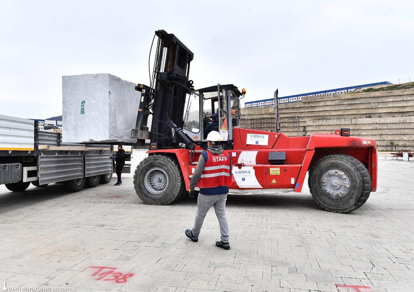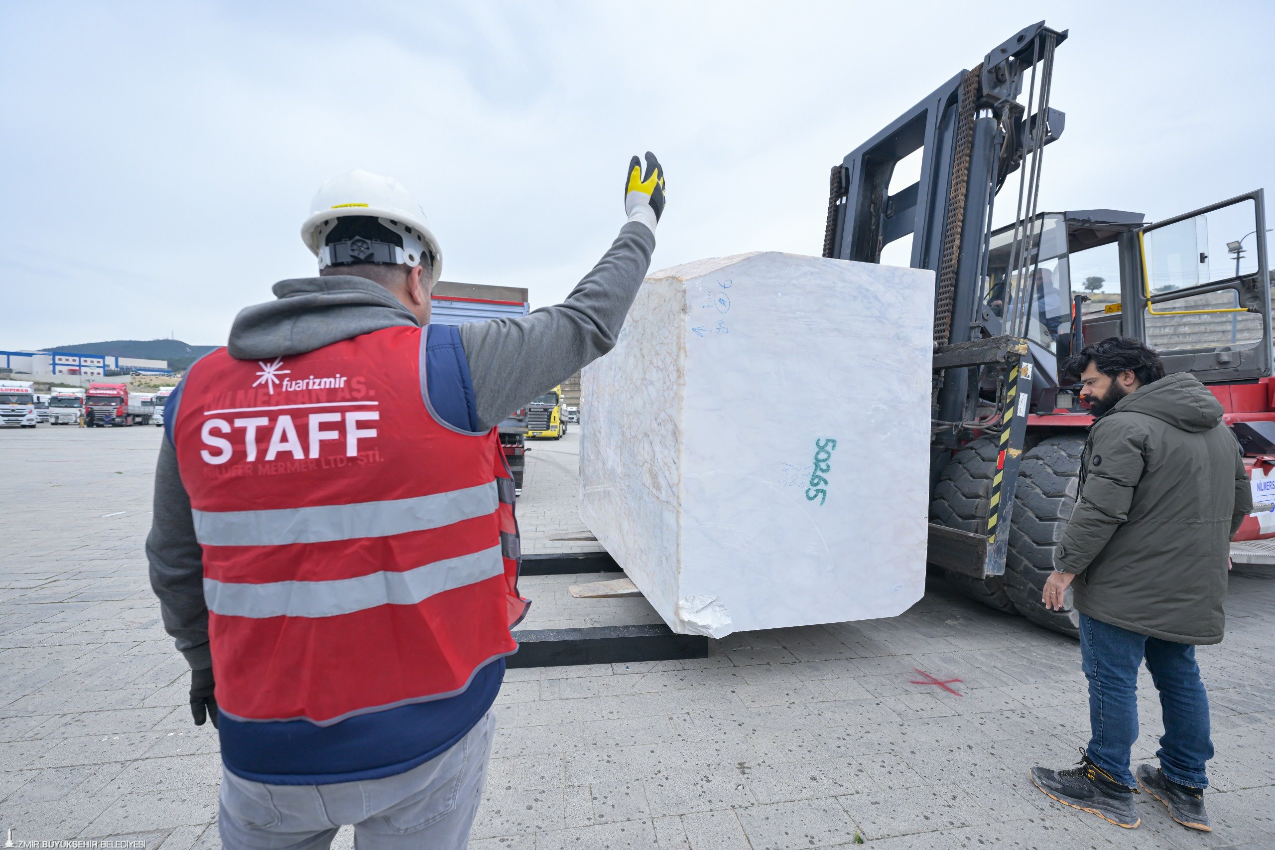 Dünyanın dört bir yanından katılımcısı, yerli ve yabancı ziyaretçi sayısıyla öncü olan Mermer Fuarı’nda kurulum hazırlıklarının başladığını bildiren İZFAŞ Genel Müdürü Tuğçe Cumalıoğlu, “İlk mermer blok alanımıza indirildi. Dünyanın her tarafından binin üzerinde blok, bin civarında katılımcı bekliyoruz. Düzenlediğimiz fuarlarla sanayi ve ticarete katkı sağlamaya devam edeceğiz. Daha güçlü bir gelecek için çalışmayı ve bu güzel ülke için üretmeyi sürdüreceğiz” şeklinde konuştu.