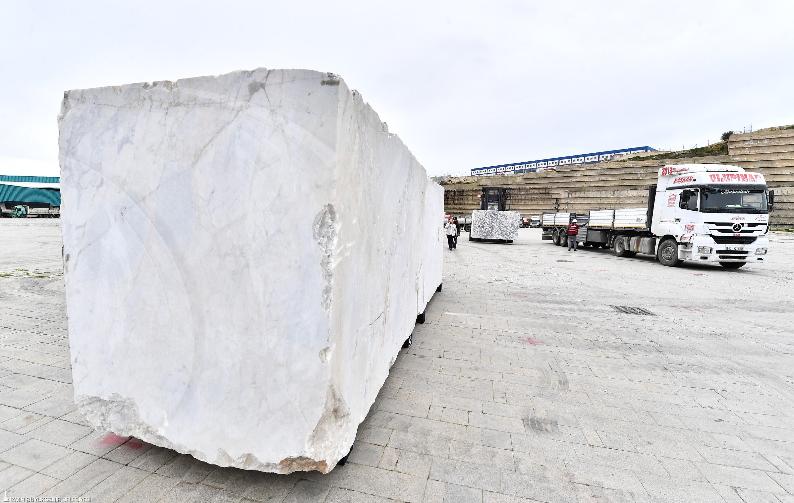 Fuarda sergilenecek blokların her birinin ağırlığı 20 tonu aşabiliyor. Bini aşkın bloğun getirileceği fuar alanında sergilenecek mermerlerin toplam ağırlığı ise yaklaşık 10 bin ton olduğu bilinen Eyfel Kulesi’nin iki katına ulaşarak 20 bin tonu bulacak.