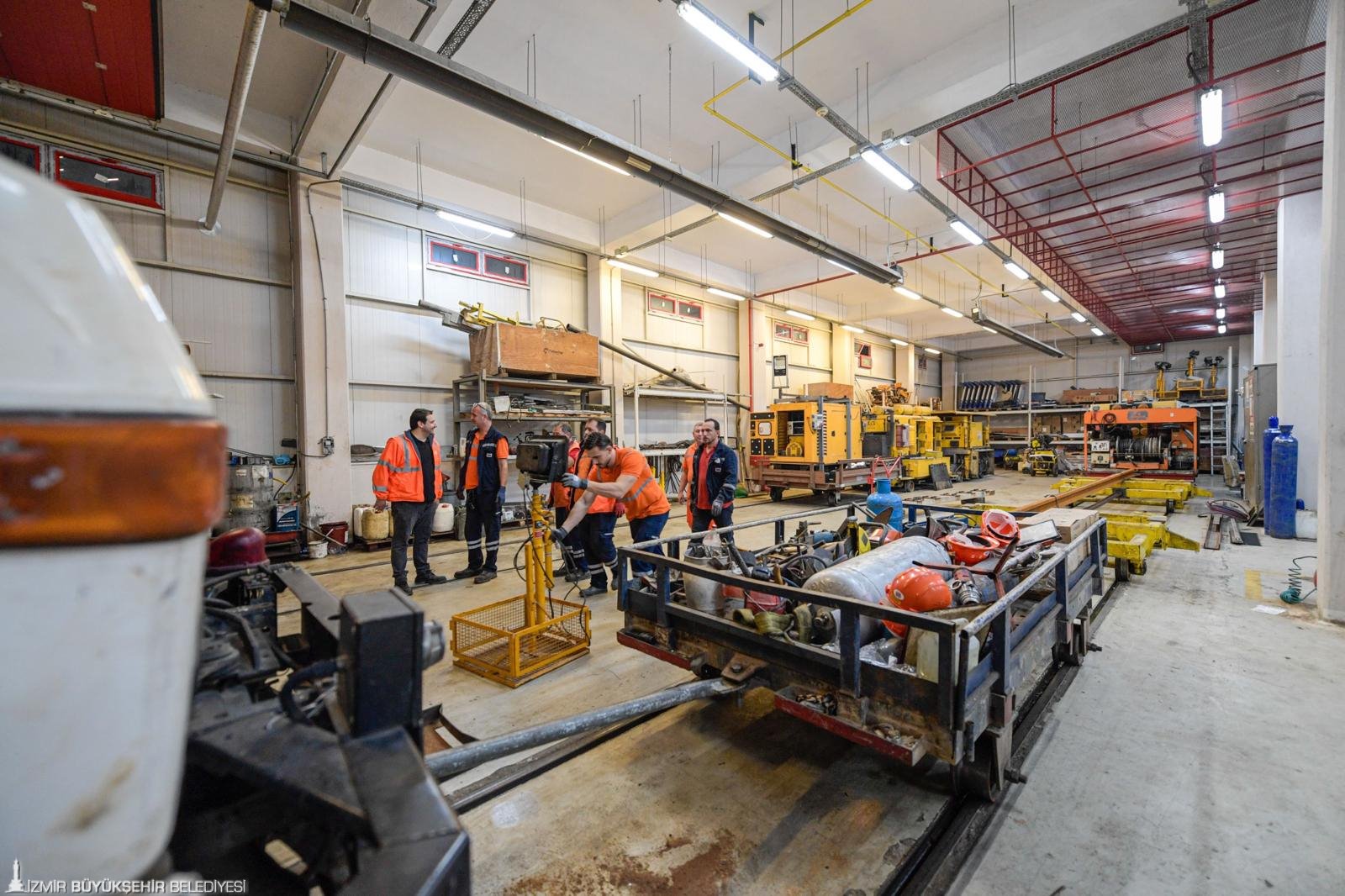 İzmir Büyükşehir Belediyesi, konforlu, güvenli ve sürdürülebilir ulaşım için çalışmalarını sürdürüyor. 24 istasyon ve 27 kilometrelik hat üzerinde yolcu taşıyan kent ulaşımının can damarı İzmir Metro AŞ seferlerin bittiği gece saatlerinde rayların bakımını ve değişimini yapıyor. Makas değişimi, taşlama gibi çalışmalar sabahın ilk ışıklarına kadar tamamlanıp hat sefere hazır hale getiriliyor.
