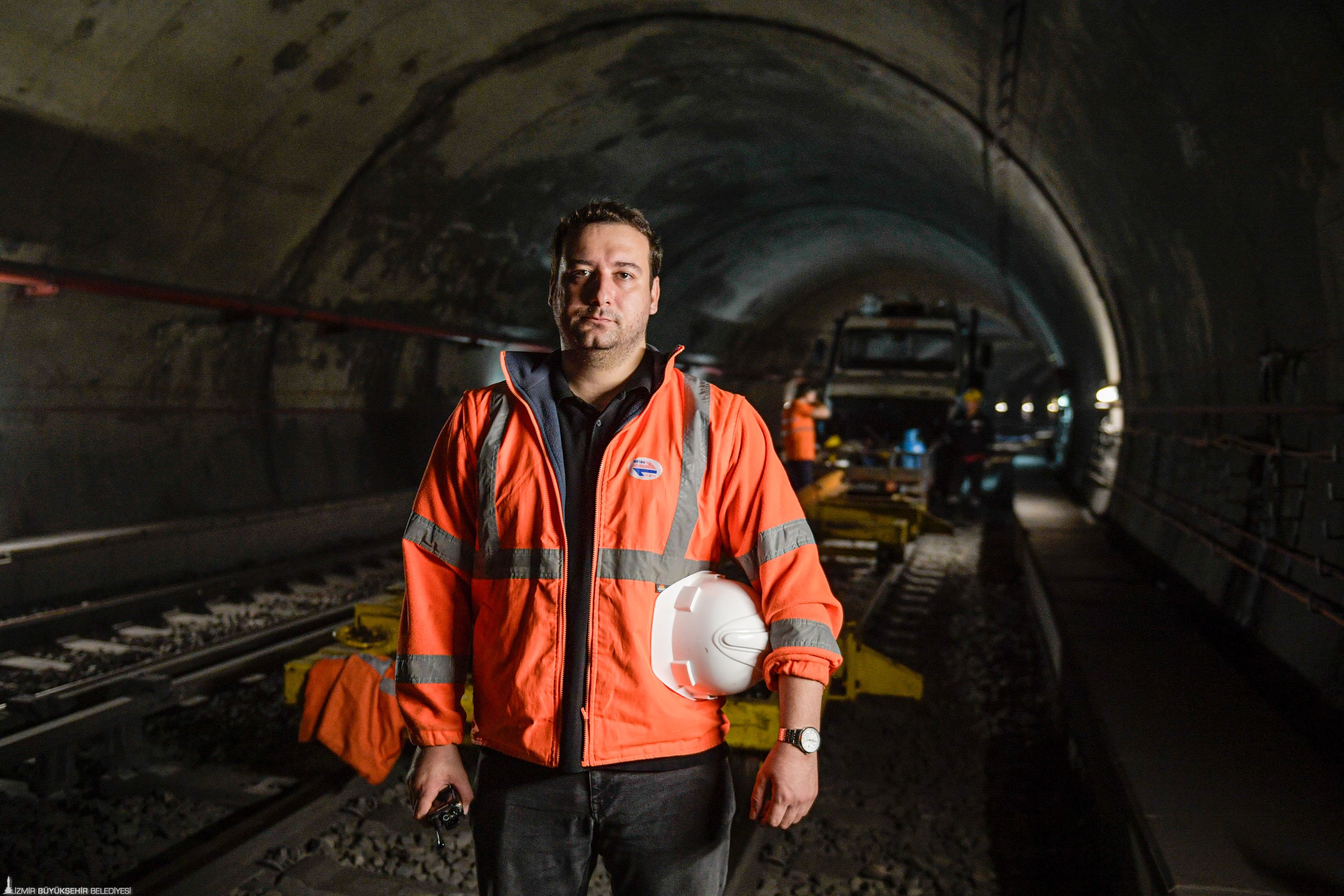 Hat bakımından sorumlu İzmir Metro AŞ Hat ve Yapılar Şefi Arda Ege Taşkıran, çift vardiya çalıştıklarını belirterek, “Gündüz trenlerimiz seferde olduğu için ağır bakım çalışmalarını hattımızda enerji olduğundan gerçekleştiremiyoruz. Enerji kesildikten sonra, gece saatlerinde 04.30’a kadar hatta çalışma zamanımız kalıyor. Bu sürede gece 10-15 kişilik hat ekibi çalışıyor. Gece ağır bakım çalışmaları, planlı bakım çalışmaları, revizyonlar, ray değişimleri, makas değişimleri, düzenleme, kaynak, taşlama çalışmalarımız devam ediyor” dedi.