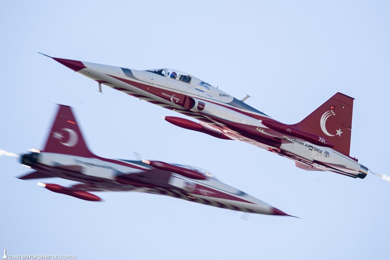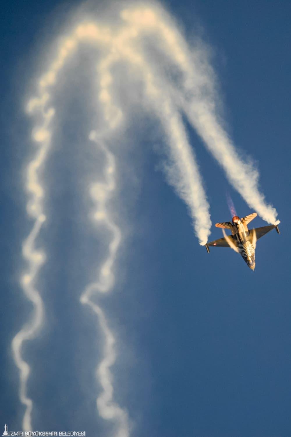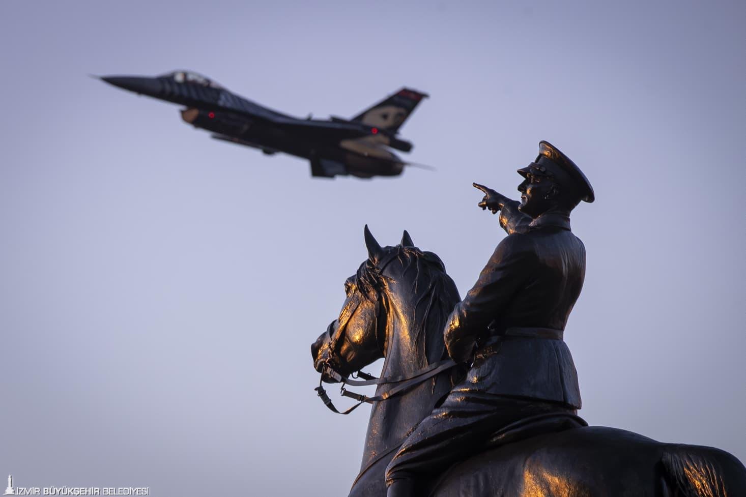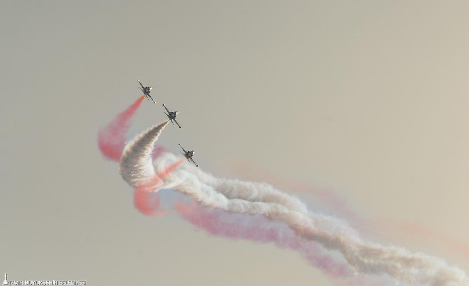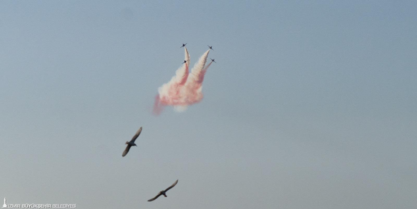 İzmir’in düşman işgalinden kurtuluşunun 103’üncü yıl dönümü, gün boyunca düzenlenen etkinliklerle kutlandı. Sabah saatlerinde başlayan program, akşam da gökyüzü şovuyla devam etti. 9 Eylül kutlamalarının heyecanla beklenen bölümlerinden biri de Türk Hava Kuvvetleri’ne bağlı Türk Yıldızları ve Solo Türk'ün gösterileri oldu. Binlerce İzmirli bu gösteriyi kaçırmamak için ellerinde Türk bayrakları ile Körfez çevresini kırmızı beyaza boyadı. Türk Hava Kuvvetleri'nin akrobasi timi olan Türk Yıldızları, gökyüzünde unutulmaz bir gösteri sundu. Hemen sonrasında ise tek pilotla gerçekleştirilen yüksek hız ve çeviklik içeren Solo Türk gösterisi, İzmir semalarında adeta görsel bir şölen yaşattı.