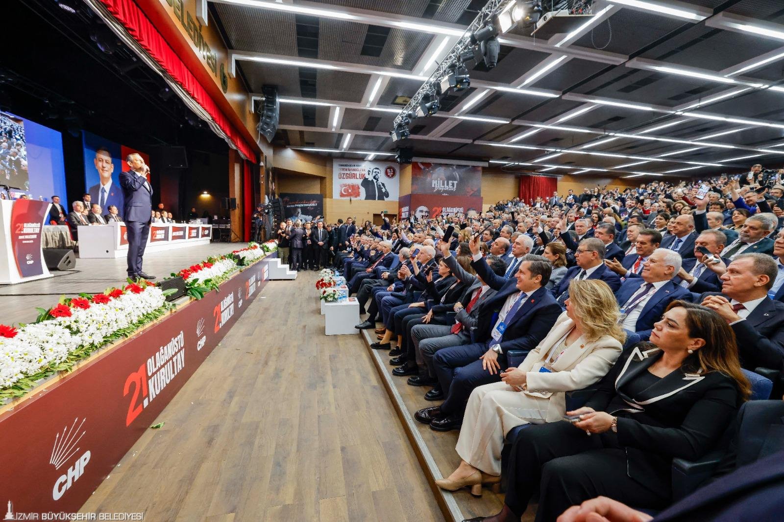 İzmir Büyükşehir Belediye Başkanı Dr. Cemil Tugay, “İrade Milletindir” sloganıyla düzenlenen 21. Olağanüstü Cumhuriyet Halk Partisi (CHP) Kurultayı’na katıldı. Ankara Yenimahalle Nazım Hikmet Kültür Merkezi’nde yapılan ve CHP Genel Başkanı Özgür Özel’in 1171 oyla yeniden genel başkan seçildiği kurultayda oyunu kullandıktan sonra açıklama yapan Başkan Tugay, olağanüstü kurultayda birlik beraberlik duygusuyla şölen havasının yaşandığını belirterek “Her kurultayda olduğu gibi yine demokrasi ve çoğulculuk hakim. Bu kurultayda hepimiz birlik ve beraberlik duygusunda birleşiyoruz. CHP’nin son zamanlarda maruz kaldığı baskılar, engellemeler ortada. Başta İstanbul Büyükşehir Belediye Başkanı Ekrem İmamoğlu olmak üzere cezaevindeki ilçe belediye başkanlarımız, haksız yere alınan tüm partililerimiz, yurttaşlarımız, gençlerimiz için mücadele ediyoruz. Genel başkanımız da buna vurgu yaptı, ne için mücadele ettiğimizi tekrar hatırlattı bize. Buradan ayrışma olmadan, o birlik beraberlik duygusuyla ayrılmak üzere bir araya geldiğimizi söyledi. Bu çağrının arkasındayım. Buradan ayrıldıktan sonra mücadelemizi daha da büyüterek devam edeceğiz. Bir dahaki kurultaya kadar bugün seçilecek Parti Meclisi’nin, oradan çıkacak olan Merkez Yürütme Kurulu’nun başarılı olmasını yürekten diliyorum. Sonuna kadar onların etrafında kenetlenerek mücadele edeceğiz. Buradaki havayı çok olumlu buluyorum, özellikle partinin motivasyonuna katkısı olacağını düşünüyorum” dedi