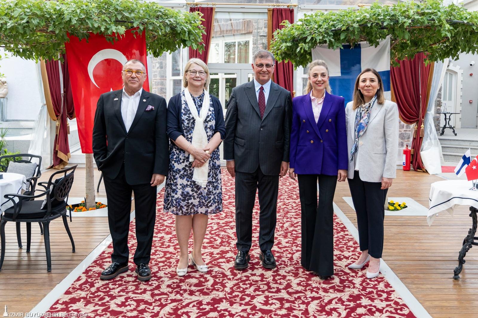 Finlandiya’nın İzmir Fahri Konsolosu Haluk Özyavuz ise “Sizi bu akşam bu özel resepsiyonda ağırlamak bizler için bir zevk ve onurdur. Demokrasinin kalbi olarak değerlendirilen ve 80 yıldır dünyanın en mutlu ülkesi olarak tanınan bir ülkenin parçası olmak çok güzel bir şey. Bu akşam arkadaşlığımızı geliştirmek, ortak değerlerimizi paylaşmak ve topluluklarımız arasındaki kültürel bağları büyütmek için bir aradayız” ifadelerini kullandı.