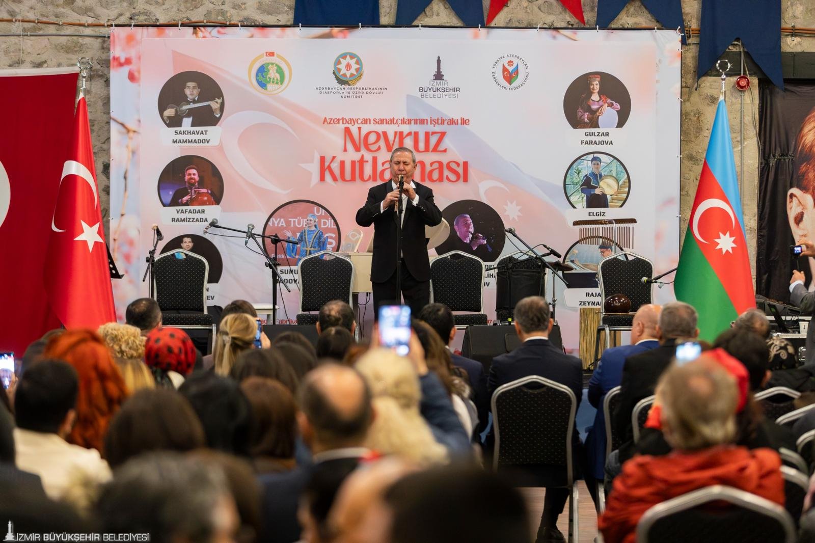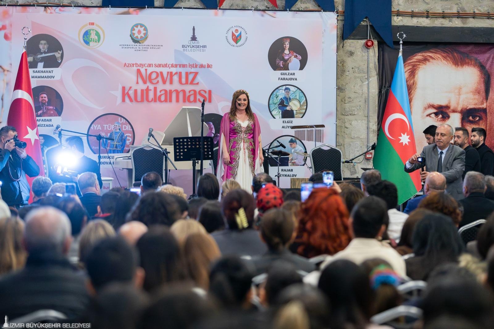 İzmir Büyükşehir Belediyesi ev sahipliğinde, İzmir Valiliği, Azerbaycan’ın Ankara Büyükelçiliği, Türkiye Azerbaycan Dernekleri Federasyonu (TADEF) iş birliği ve Azerbaycan Diaspora Komitesi’nin desteğiyle Tarihi Havagazı Fabrikası’nda, baharın müjdecisi ve birlik-beraberliğin simgesi Nevruz kutlandı. Azerbaycanlı sanatçıların sahne aldığı geceye, İzmir Büyükşehir Belediye Başkanı Dr. Cemil Tugay da katıldı. Etkinlikte ayrıca Azerbaycan Cumhuriyeti Devlet Diaspora Komitesi Başkanı Fuad Muradov, Azerbaycan Büyükelçisi Reşad Memmedov, Karabağlar Belediye Başkanı Helil Kınay, Bornova Belediye Başkanı Ömer Eşki, bürokratlar, İzmir’de yaşayan Azerbaycanlılar ve İzmirliler yer aldı. Katılımcılar, Azerbaycanlı sanatçıların söylediği şarkılara Türkiye ve Azerbaycan bayrakları sallayarak hep bir ağızdan eşlik etti.