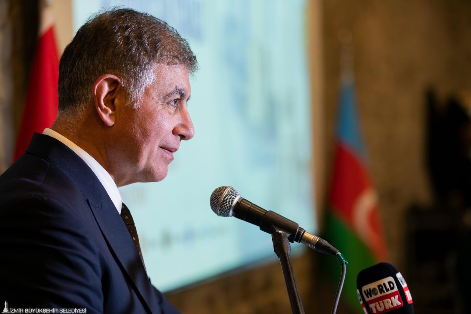Gecede bir konuşma yapan Başkan Dr. Tugay, İzmir'in ilk kardeş kentinin Bakü olduğunu belirterek, “Aradan 40 yıl geçti. 1,5 yıl kadar önce ben Bakü’yü ziyaret ettiğimde, Bakü Belediye Başkanı’nı da ziyaret ettim. İkimiz de biraz mahcup olduk; bu kadar birbirine yakın iki şehir neden daha az görüşüyor diye düşündük. O gün, bundan sonra daha yakın olacağız diye karar verdik. Görüştüğüm tüm Azerbaycan yetkililerine, dostlarımıza ve devlet büyüklerine hep aynı şeyi söyledim: İzmir’de Azerbaycan’ı ve halkını sevmeyen tek bir insan bile bulamazsınız. İzmir, milliyetçi ve Atatürkçü bir kenttir. Yüreği, kendi soydaşlarına ve Balkanlar’dan Orta Asya’ya kadar herkese karşı derin bir sevgi ve saygı duyan insanlarla doludur. Bu nedenle İzmir, bu dostluğu geliştirmek için daha çok çalışmalı, üzerine düşeni yapmalı. Ben bu şehrin belediye başkanı olduğum sürece, daha fazla Azerbaycanlıyı burada görmek istiyorum. Onları bağrımıza basmak istiyoruz” dedi.