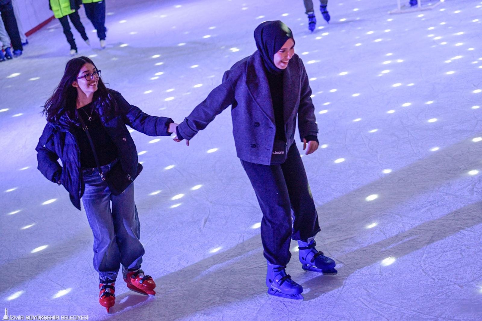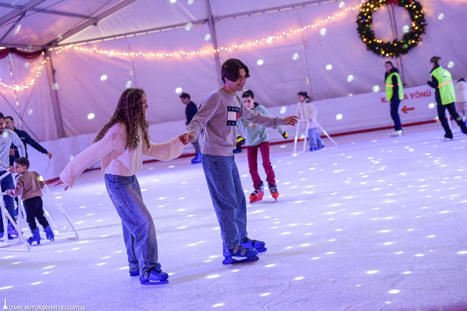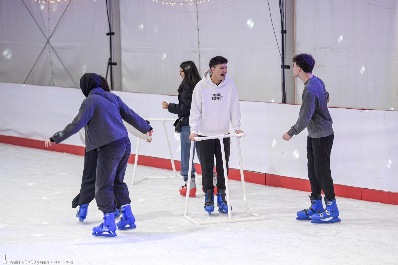 İzmir Büyükşehir Belediye Başkanı Dr. Cemil Tugay’ın Karşıyaka Belediye Başkanlığı döneminde düzenlenmesine öncülük ettiği ve son iki yıldır Kültürpark’ta gerçekleştirilen Yeni Yıl Festivali, bu yıl da vatandaşların yüzünü güldürdü. Festival kapsamında Kültürpark ve Bostanlı sahilinde ilk kez kurulan gerçek buz pistleri, İzmirlileri kış atmosferiyle buluşturdu. Aileleriyle birlikte pistlere gelen çocuklar, gençler ve yeni yıl tatilini değerlendiren yurttaşlar, güvenli ve eğlenceli bir ortamda buzda kayma deneyimi yaşadı. Büyük ilgi gören iki merkezdeki buz pistleri, 15 Şubat tarihine kadar hizmet vermeyi sürdürecek. Yarıyıl tatiline girilmesiyle birlikte özellikle çocukların ve gençlerin pistlere ilgisinin artması bekleniyor. Uzman eğitmenler eşliğinde, müzikle desteklenen etkinliklerde minikler buz üzerinde keyifli anlar yaşayacak. Kültürpark ve Bostanlı’daki 400 metrekarelik buz pistlerinde, 7-26 yaş arası gençler için 100 TL, yetişkinler için ise 150 TL ücretle hizmet sunuluyor.
