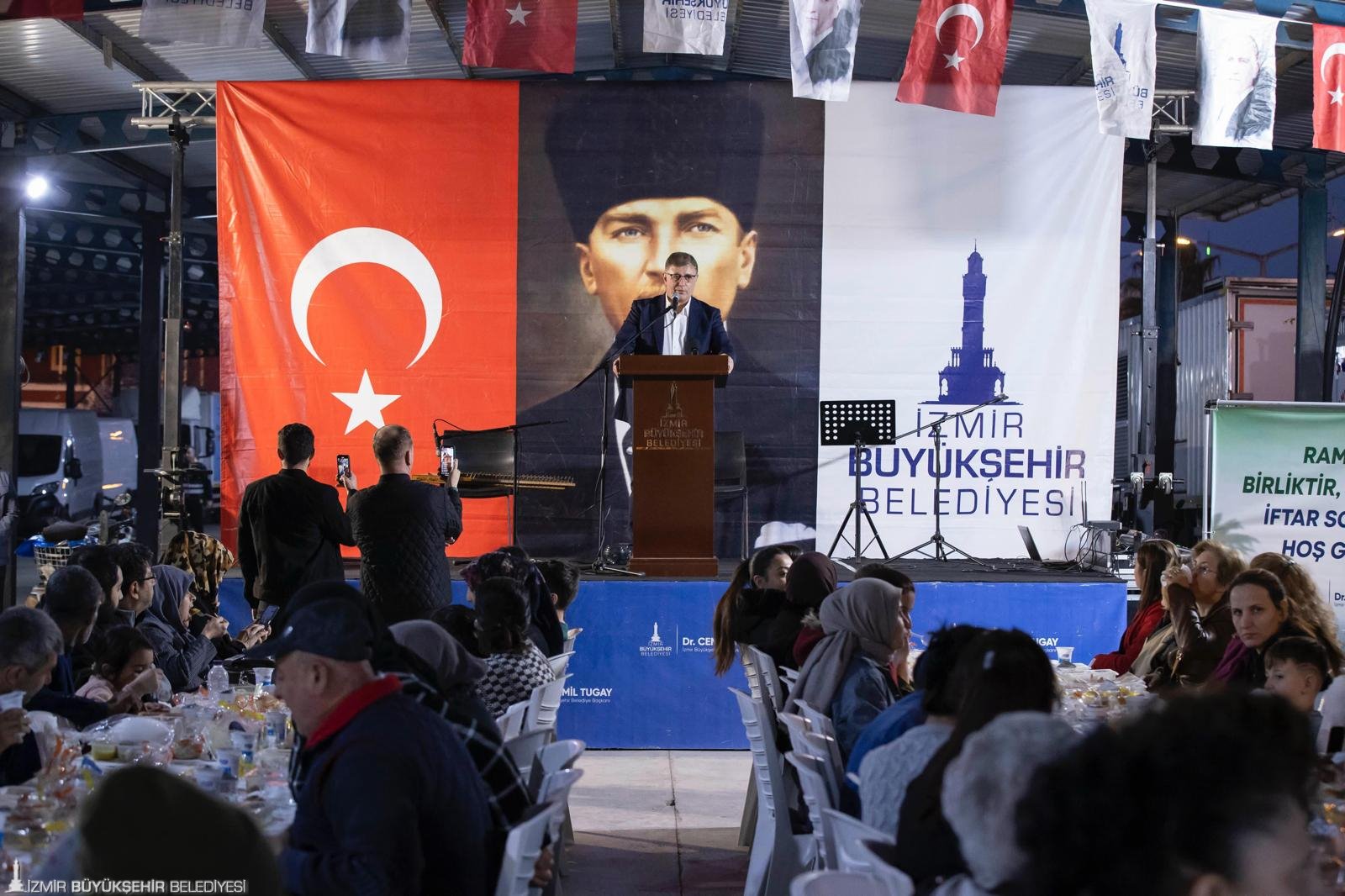 Bugün mütevazı bir sofranın etrafında bir arada olduklarına dikkat çeken Tugay, şunları söyledi: “Umarım ileride çok daha güzel günlerde, çok daha zengin sofralarda da bir arada olalım. Az ya da çok demeden paylaşmayı istemeliyiz ve bunu gerçekleştirmeliyiz. Şunu da unutmayalım. İçimizden sadece birilerinin varlık sahibi olması, içimizden sadece birilerinin refahının olması bize yetmez. Herkesin iyi olması lazım. Herkesin ihtiyaçlarının karşılanması lazım. Bize verdiğiniz sorumlulukla, biz de en çok bu adaleti sağlamak üzere çalışıyoruz. Sizlerin varlığı ile manevi güç elde ediyoruz. Sizlerle birlikte olduğumuz her zaman, bize bakışınız, dokunuşunuz, bize söylediğiniz iki güzel kelime çok büyük değer taşıyor. İzmir'e hayatım boyunca inandım. Türkiye'ye inandım. Türk milletine inandım, yüce Allah'a inandım. Yüce Allah'tan her zaman şehrimize, ülkemize, insanlarımıza hayırlar, iyilikler, bereket vermesini diledim. Bu dileği bugün sizlerle paylaştığım için ben de mutluluk ve onur duyuyorum. Gelecek günlerde yeniden buluşmak umuduyla.”