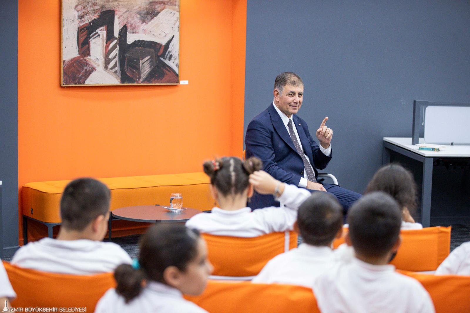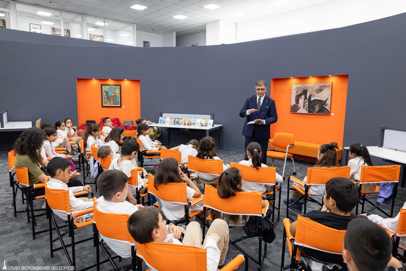 Fuat Köprülü İlkokulu 3. sınıf öğrencileri, Kültürpark’ta bulunan İlber Ortaylı Kütüphanesi’nde unutulmaz bir gün yaşadı. İzmir Büyükşehir Belediye Başkanı Dr. Cemil Tugay, çocuklarla bir araya gelerek onlara keyifli bir okuma saati yaşattı. Ömer Seyfettin’in Pembe İncili Kaftan hikâyesini çocuklara okuyan Başkan Tugay, kendisini can kulağı ile dinleyen çocuklara kitap okumanın önemini de anlattı.