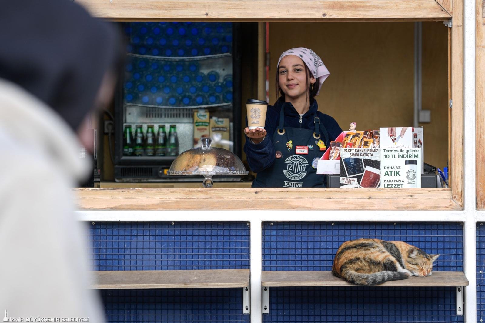 İzmir Büyükşehir Belediyesi’nin 2023 yılının kasım ayında hayat pahalılığından etkilenen gençler ve öğrenciler için hayata geçirdiği, ancak ayrımsız tüm yurttaşların yararlandığı İzmirli Kahve kaliteli ve erişilebilir hizmet sunmayı sürdürüyor. Piyasadaki benzer işletmelere kıyasla yaklaşık yarı fiyatına kahve sunan İzmirli Kahve noktaları, aynı zamanda kentin sosyal ve kültürel buluşma alanları olarak her gün çok sayıda misafiri ağırlıyor. Alanında uzman baristalar tarafından hazırlanan nitelikli kahveler çok beğeniliyor. Güncel olarak 12 noktada hizmet veren İzmirli Kahve, ilk günden itibaren bir milyon bardak satış yaptı. Günlük binin üzerinde satış yapılan şubelerde, tek kullanımlık bardak tüketimini azaltmayı amaçlayan “Kahvem Termosta” kampanyasıyla çevreci ve ekonomik bir adım da atıldı. Ayrıca 200 gramlık paket kahveler de 200 liradan satışa sunulmaya başlandı.